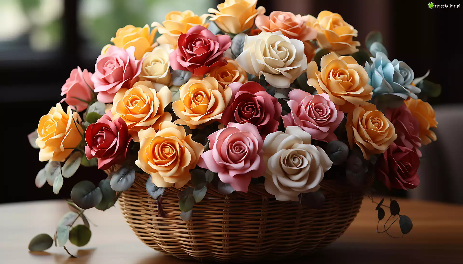Zdjęcie, Kolorowe, Róże, Koszyk