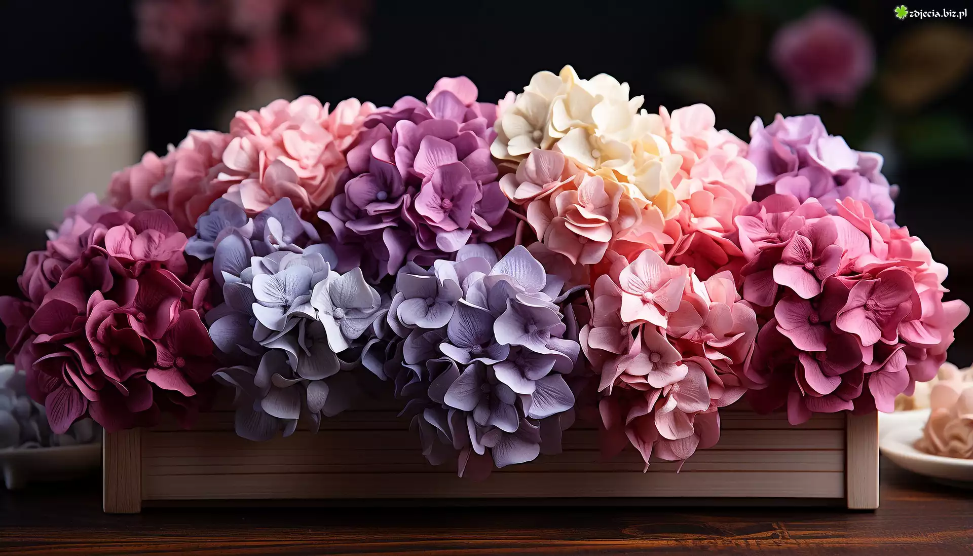Zdjęcie Hortensja, Kolorowe, Kwiaty, Skrzynka, Grafika