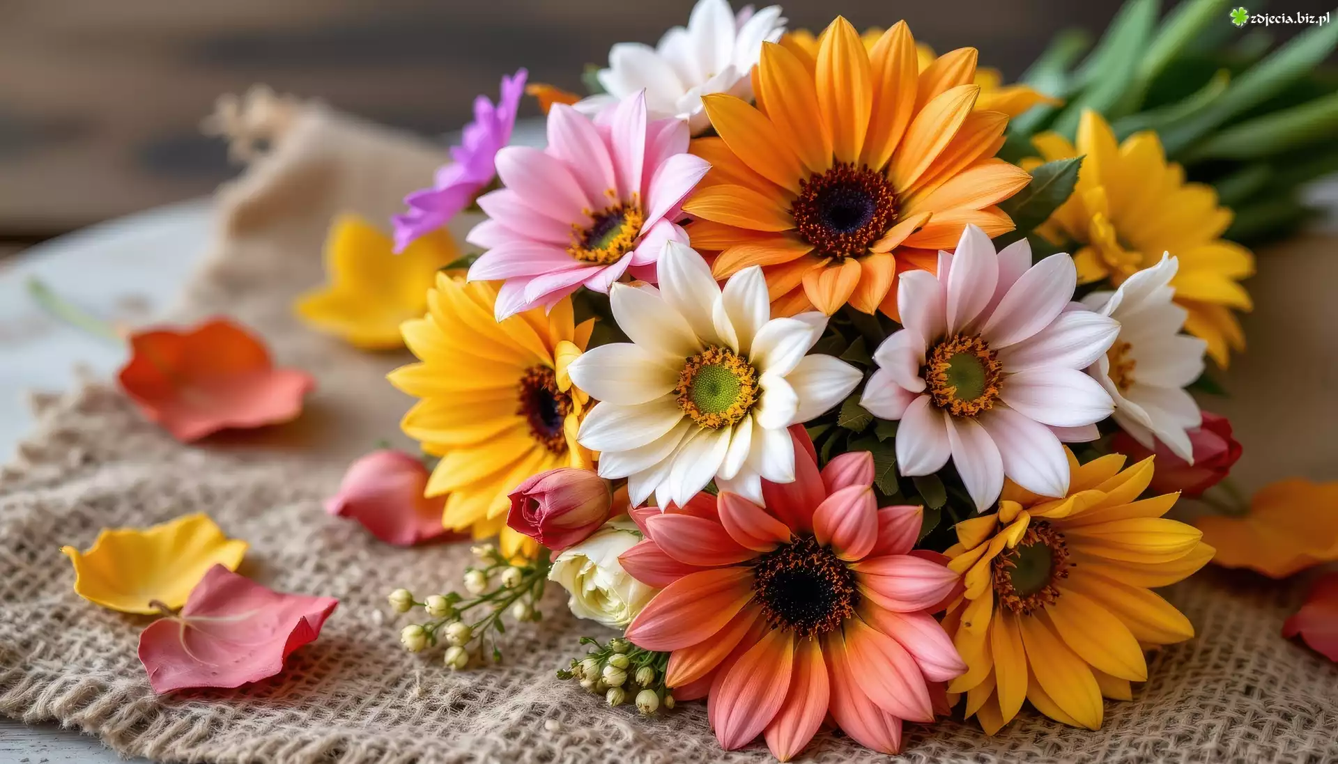 Zdjęcie Bukiet, Kolorowe, Kwiaty, Płatki, Płótno