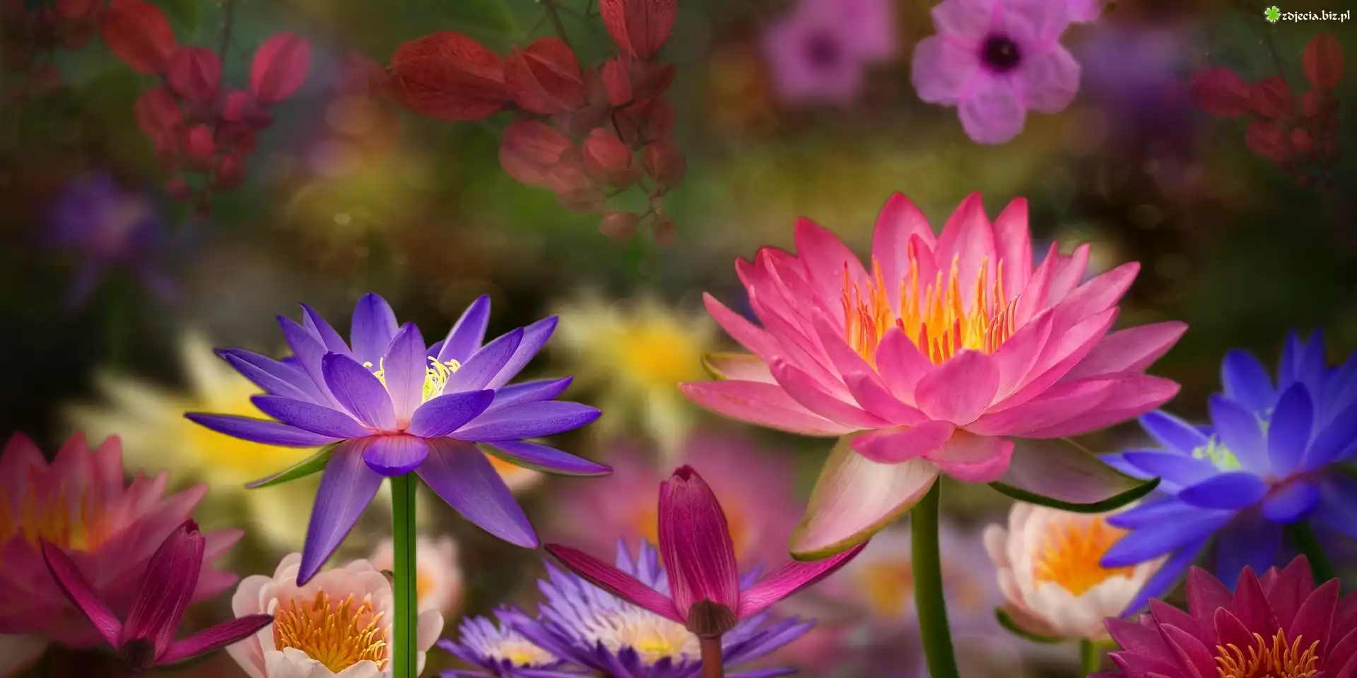 Zdjęcie, Kolorowe, Kwiaty, Lilia wodna