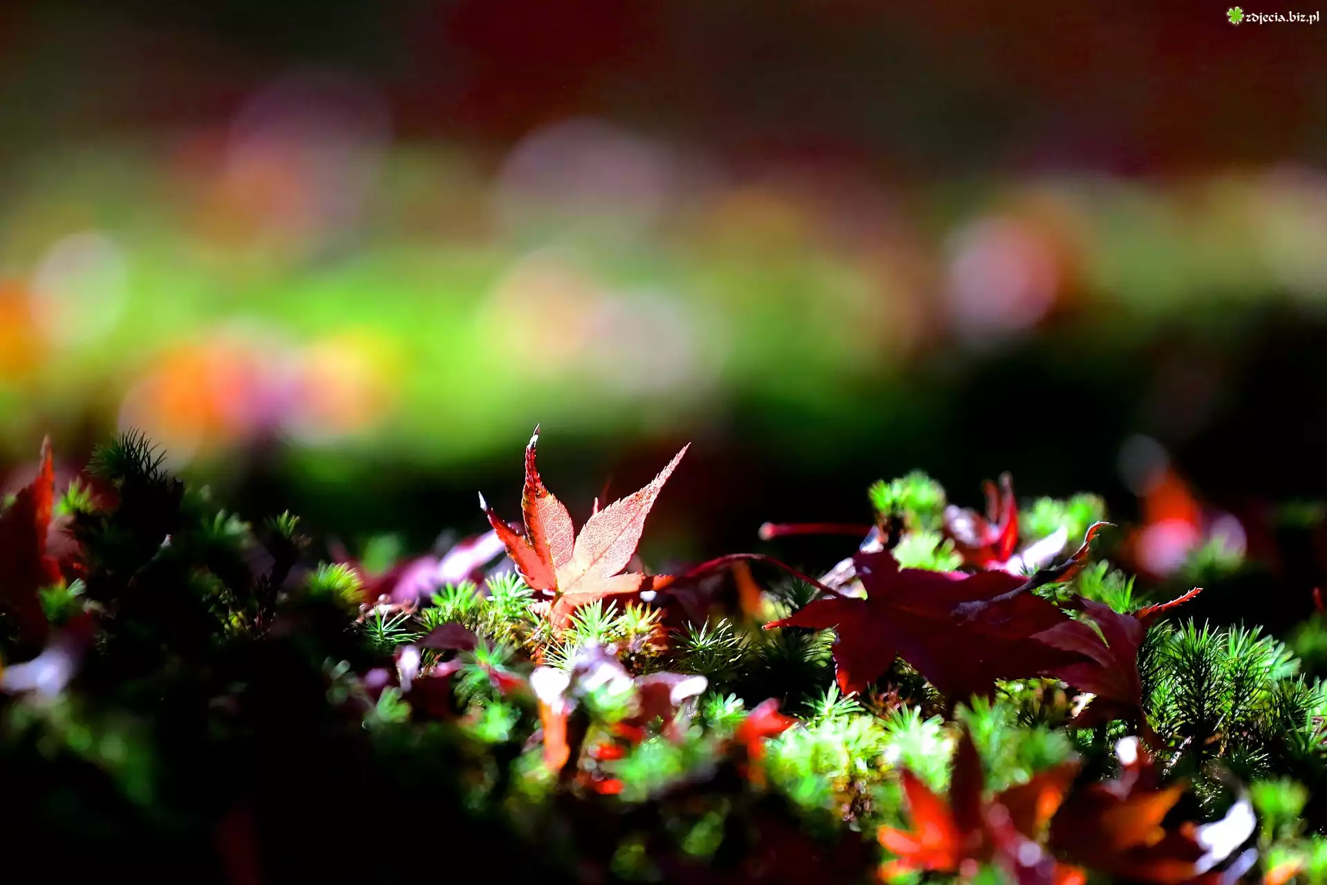 Zdjęcie Kolorowe, Liście, Mech, Makro