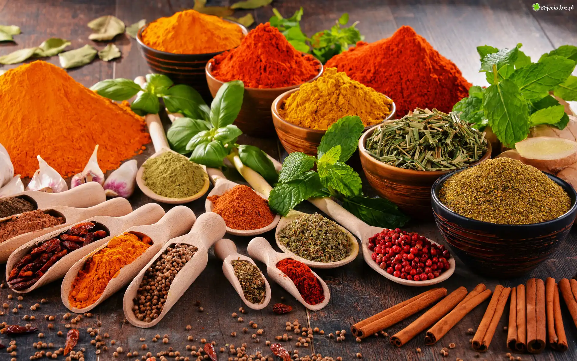 Zdjęcie, Kolorowe, Przyprawy, Miseczki, Łyżki