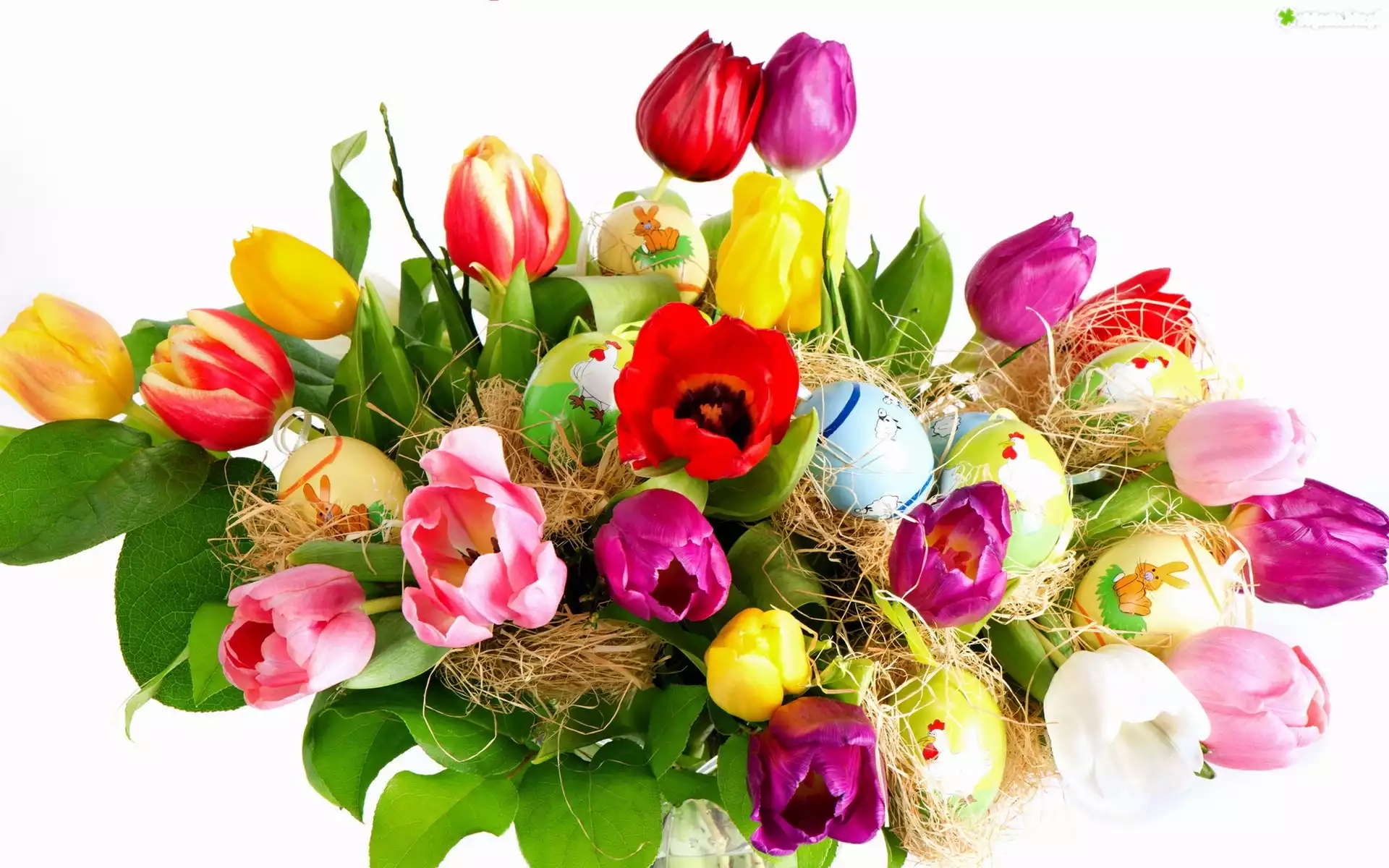 Zdjęcie, Kolorowe, Tulipany, Pisanki, Wielkanoc
