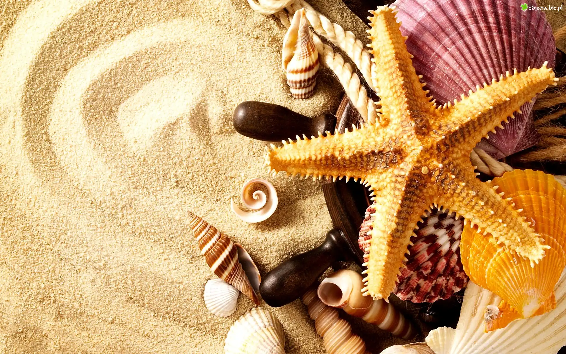 Zdjęcie Kolorowe, Muszelki, Rozgwiazda, Piasek