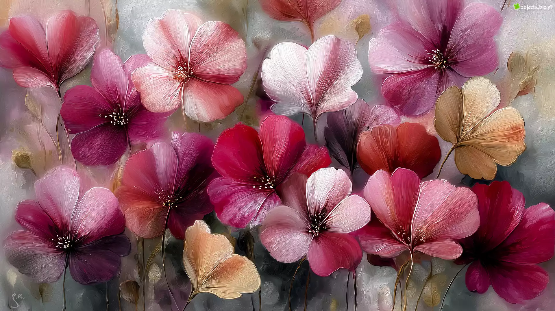 Zdjęcie Kwiaty, Kolorowe, Różowe, Grafika AI
