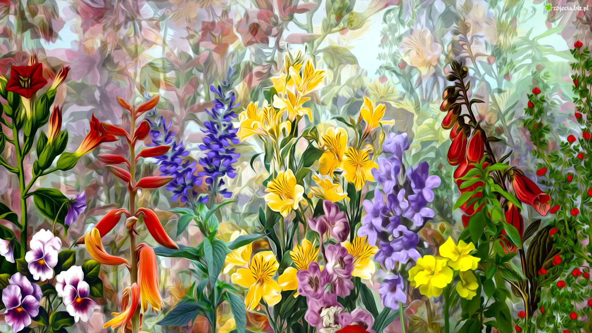 Zdjęcie Kolorowe, Kwiaty, Kolorowe tło, Grafika