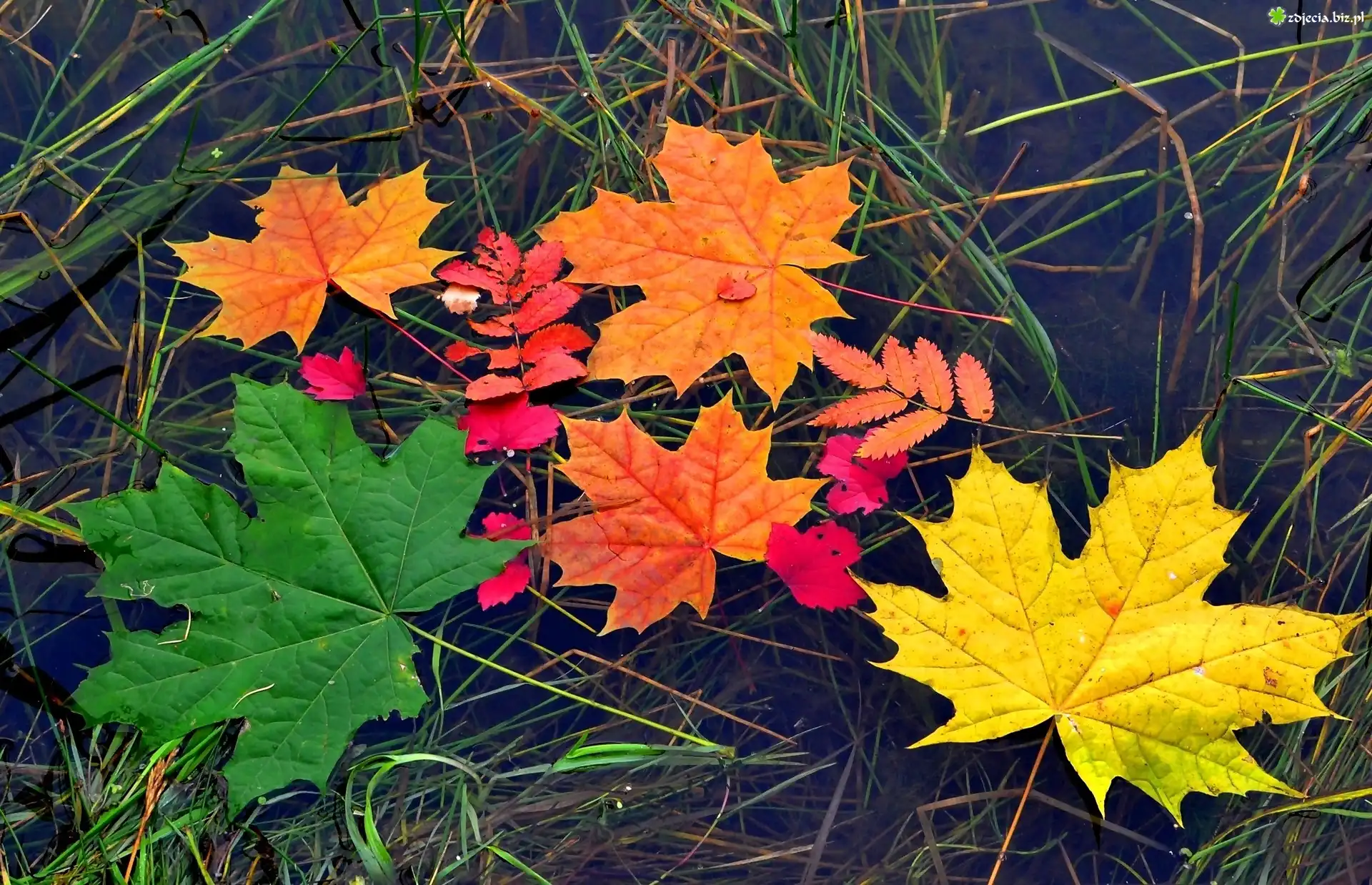 Zdjęcie Kolorowe liście, Woda, Jesień