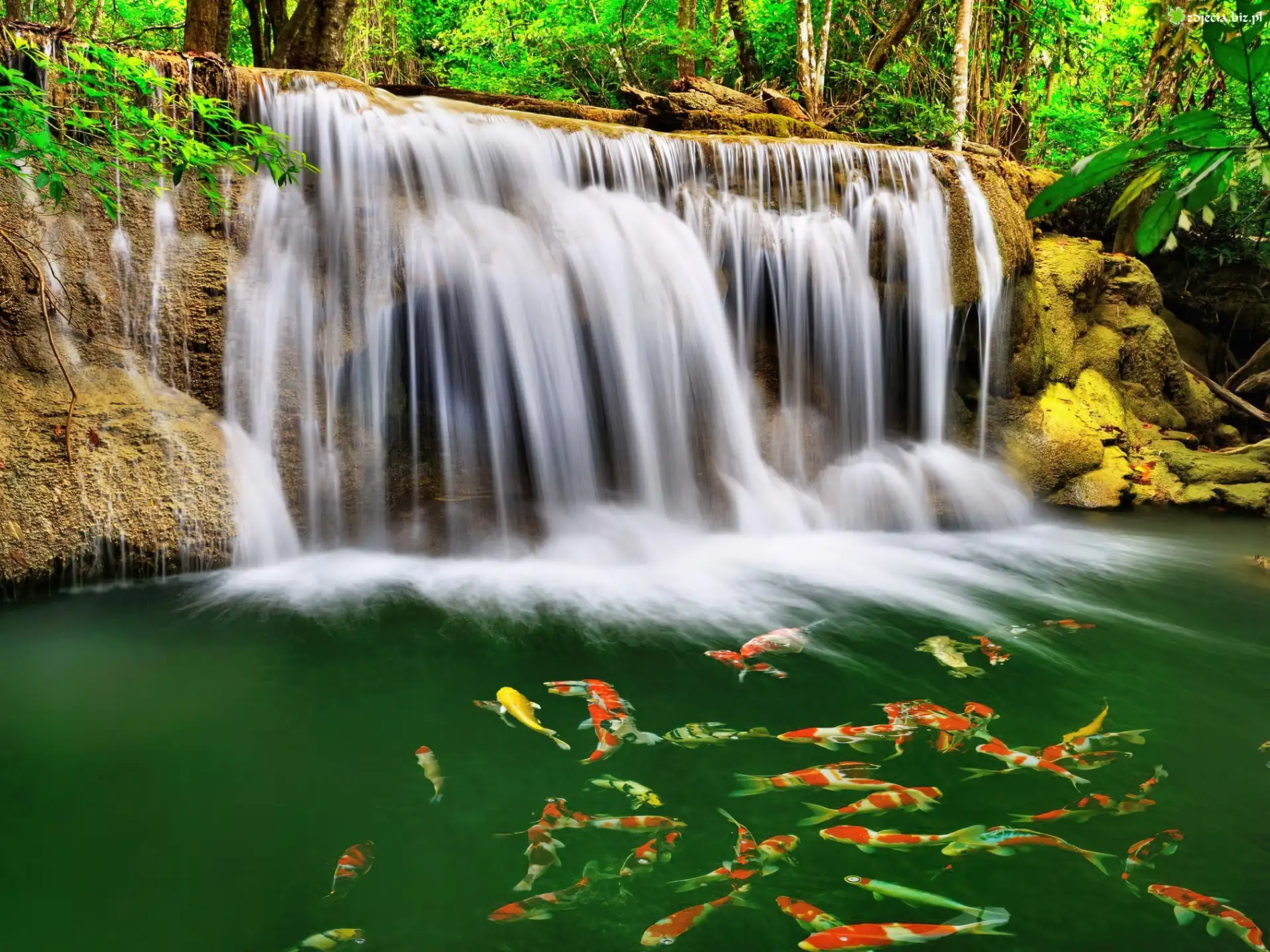 Zdjęcie Wodospad, Kolorowe, Ryby