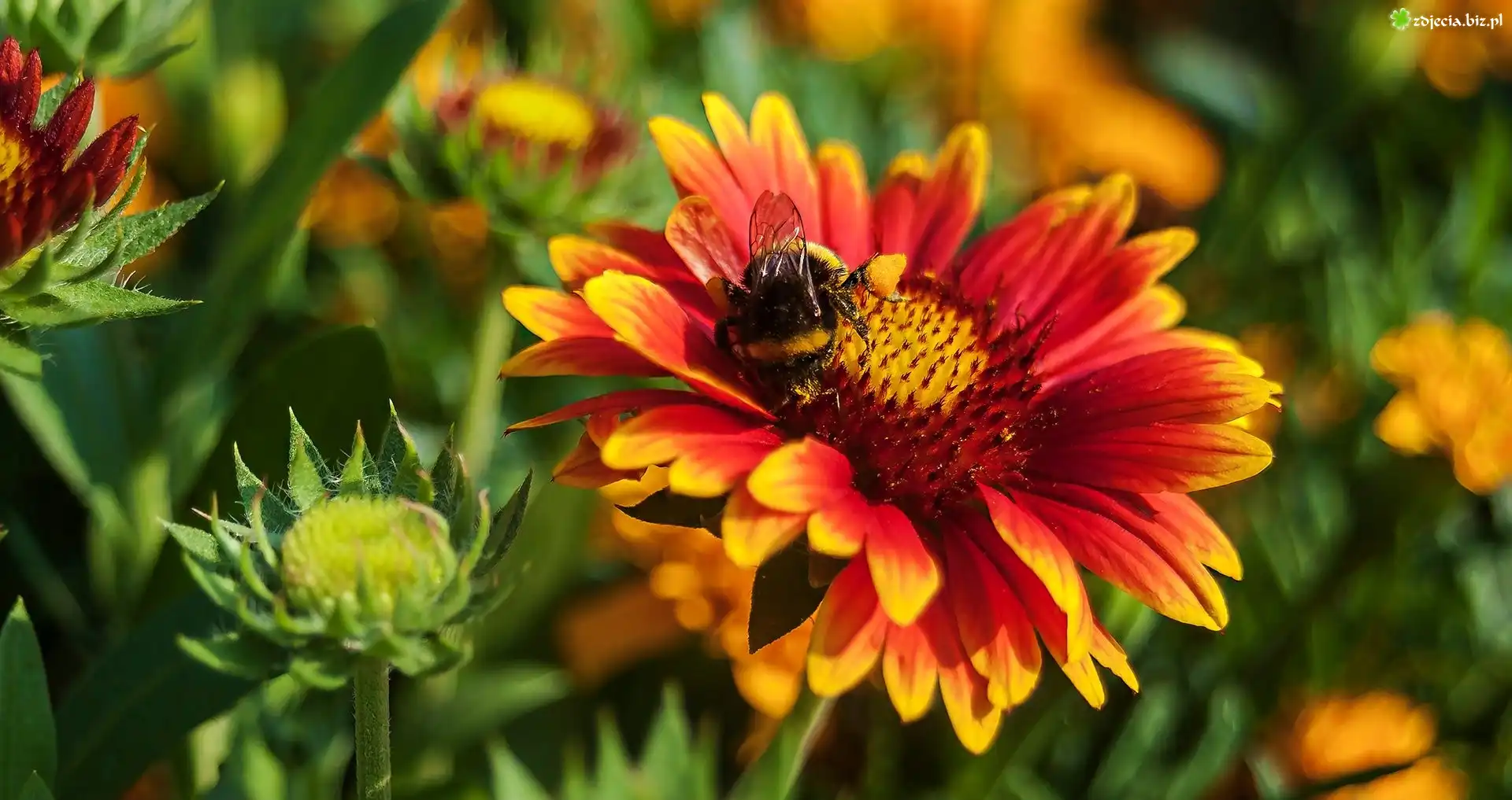 Zdjęcie Trzmiel, Kolorowy, Kwiat, Gailardia oścista
