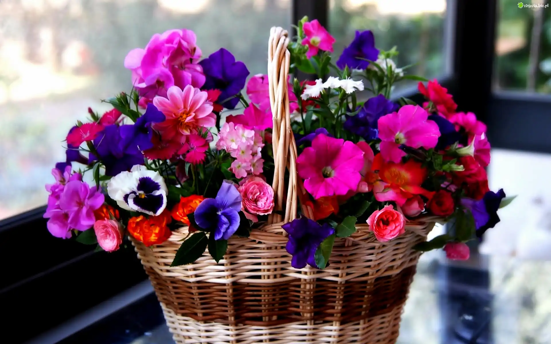 Zdjęcie Kosz, Kolorowych, Kwiatów
