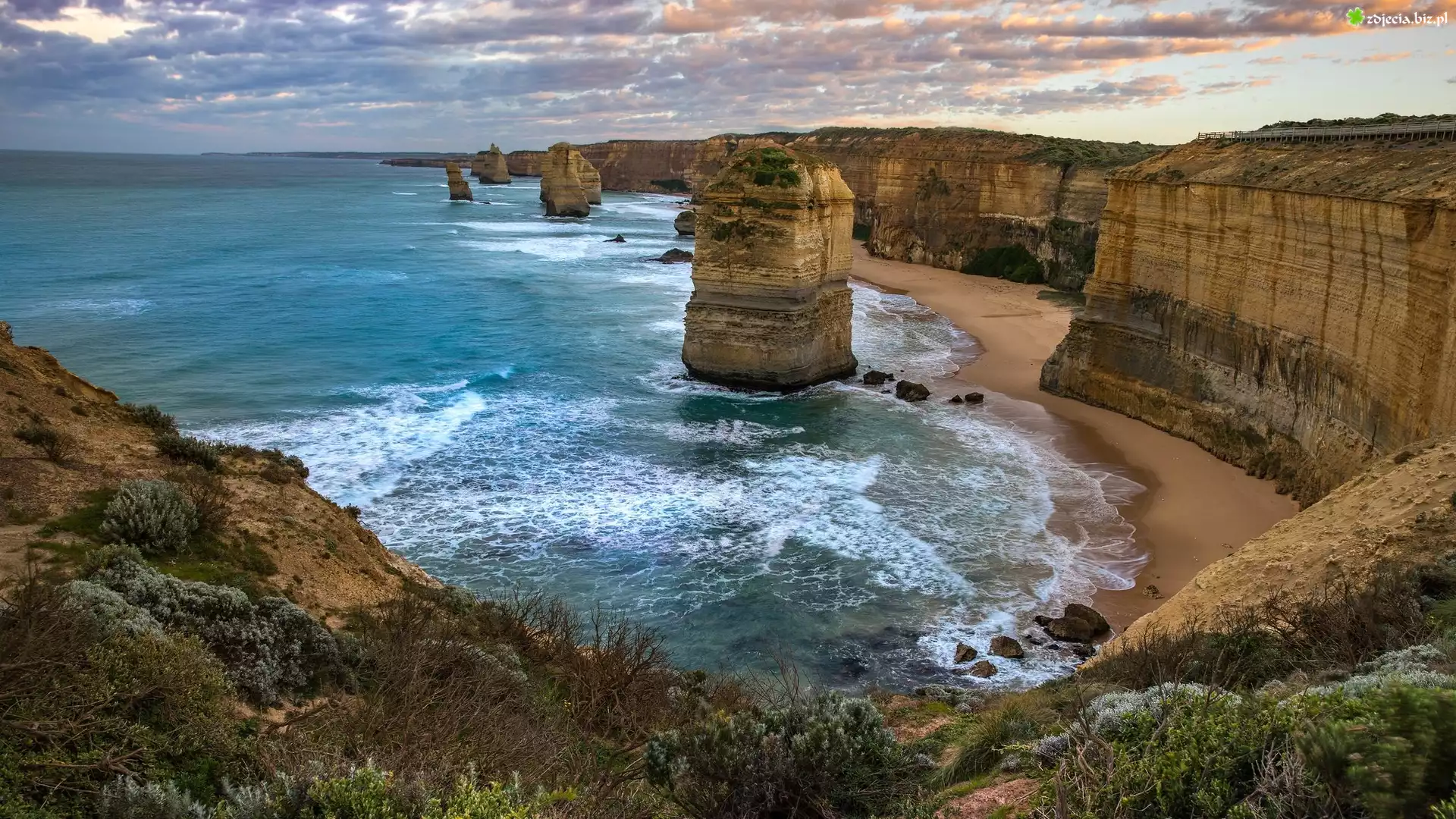 Zdjęcie Kolumny wapienne, Dwunastu Apostołów, Klif, Cieśnina Bassa, Park Narodowy Port Campbell, Australia, Morze, Skały, Wybrzeże |