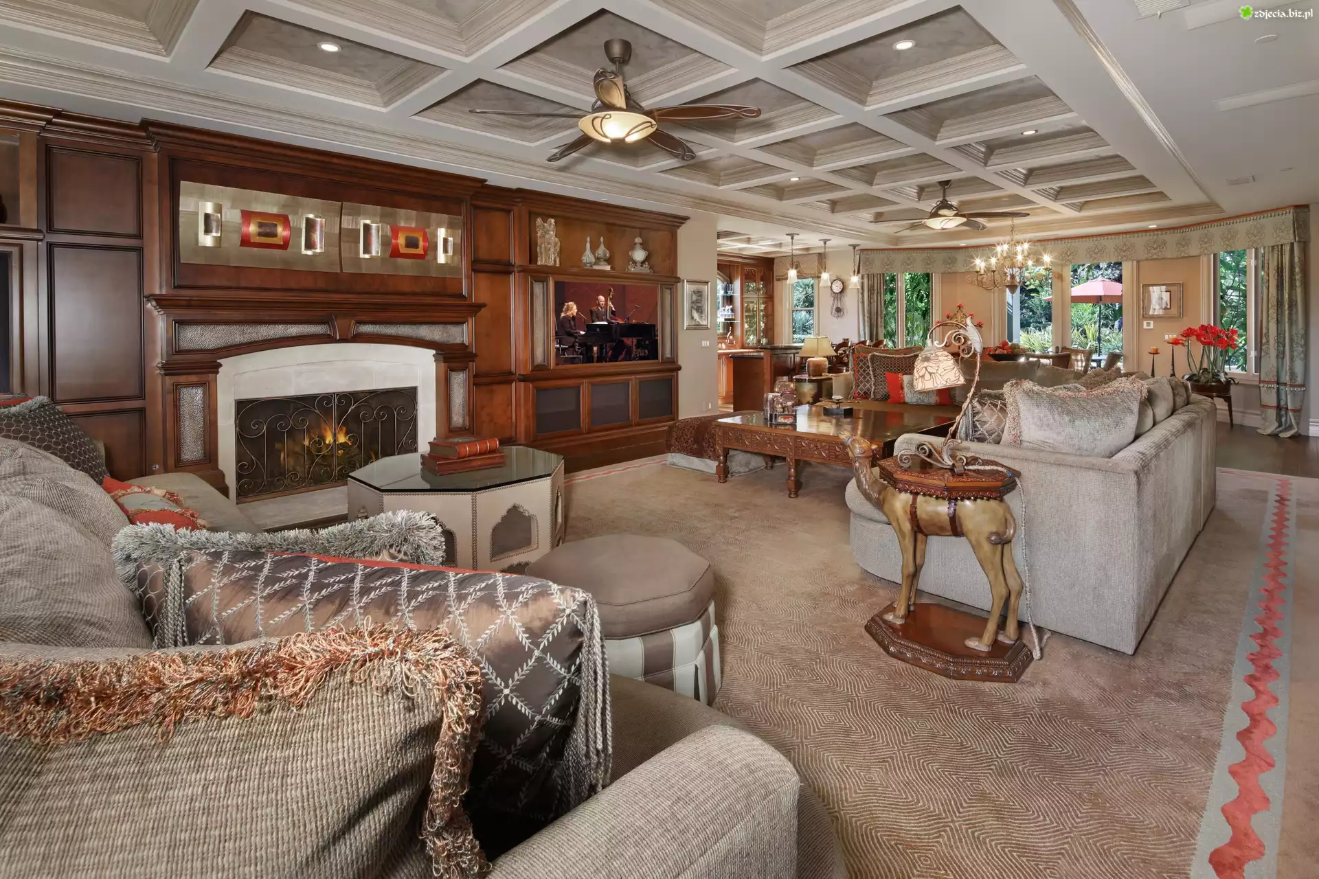 Zdjęcie, Salon, Kominek, Dywan