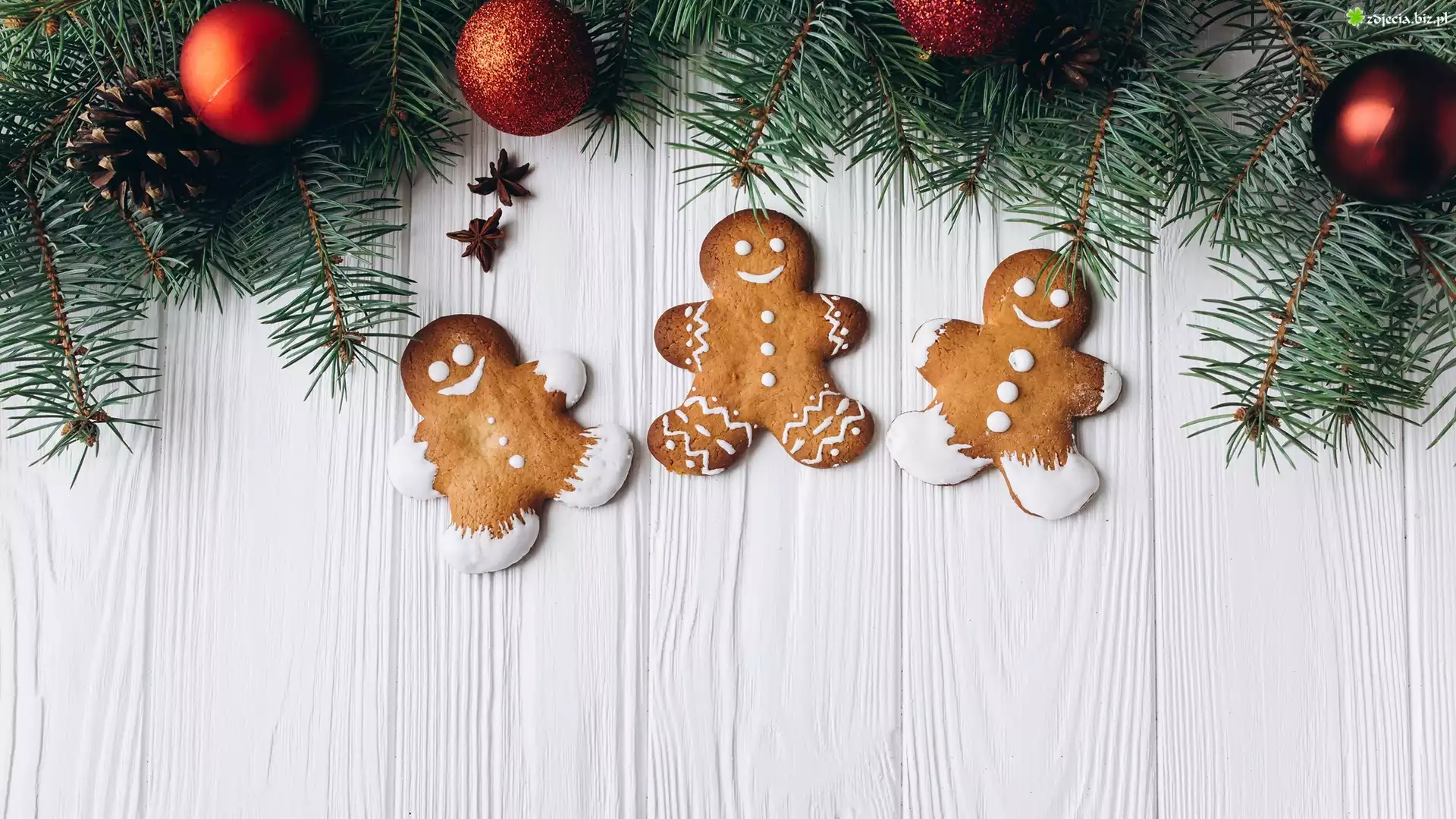 Zdjęcie Kompozycja, Pierniczki, Gałązki, Bombki, Boże Narodzenie