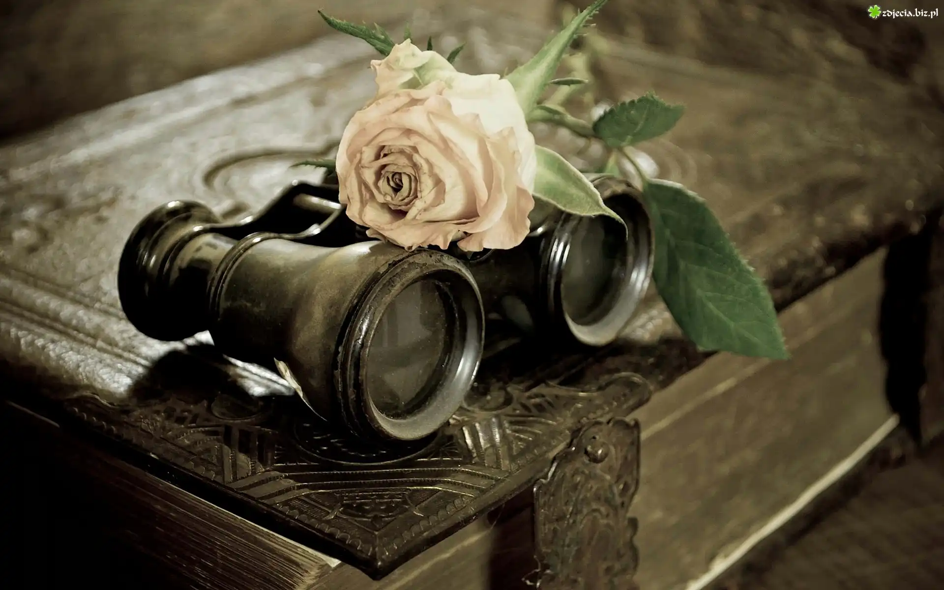 Zdjęcie Kompozycja, Róża, Książka, Lornetka