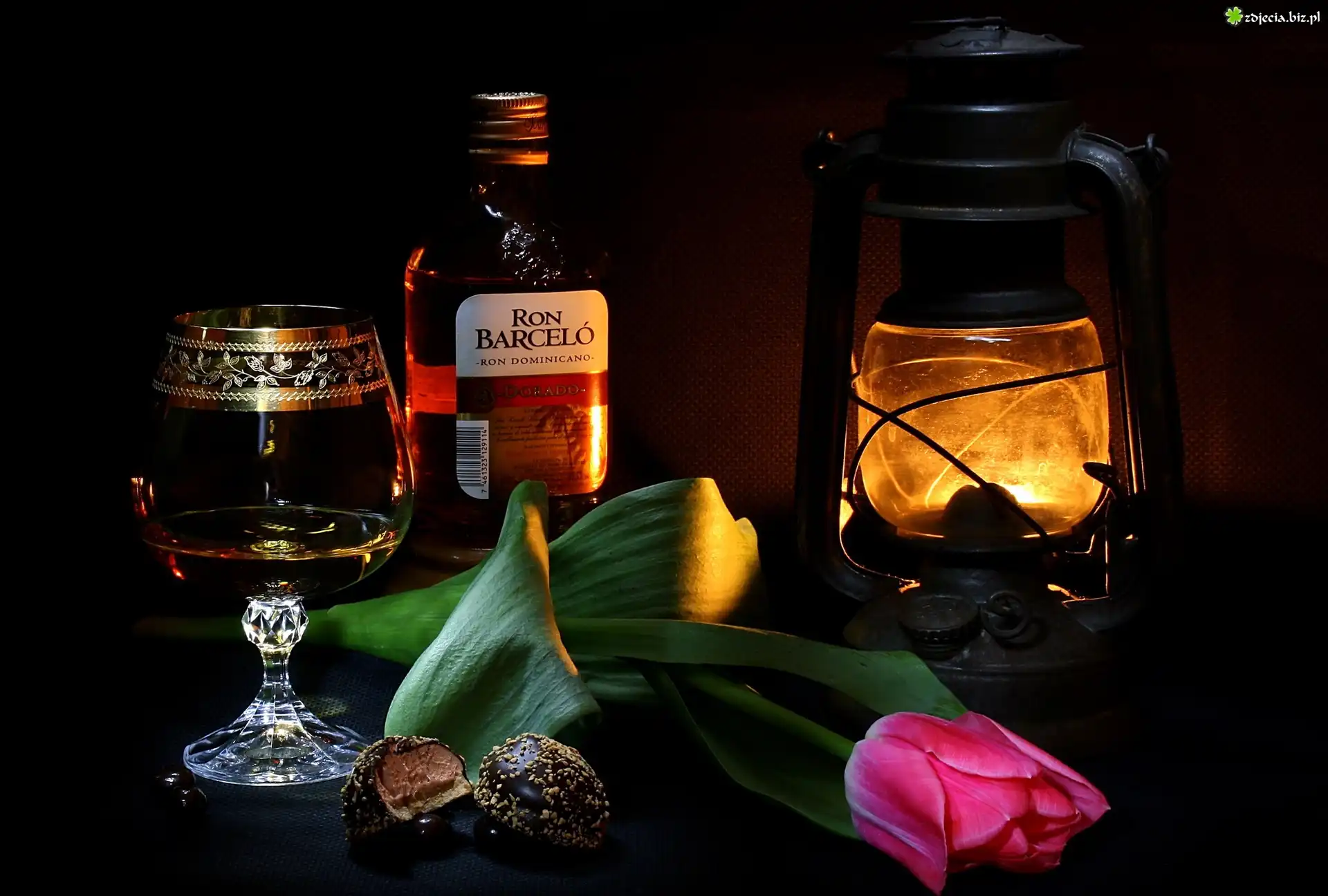 Zdjęcie Kompozycja, Alkohol, Lampa, Tulipan