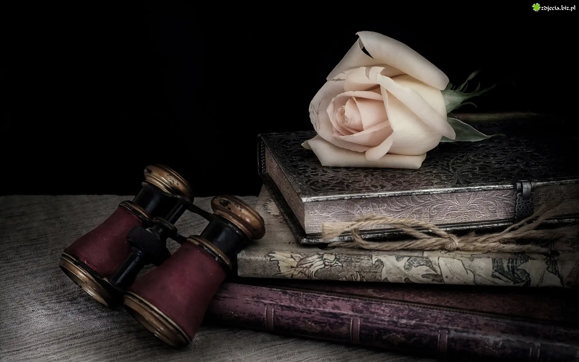 Zdjęcie Kompozycja, Książki, Róża, Lornetka