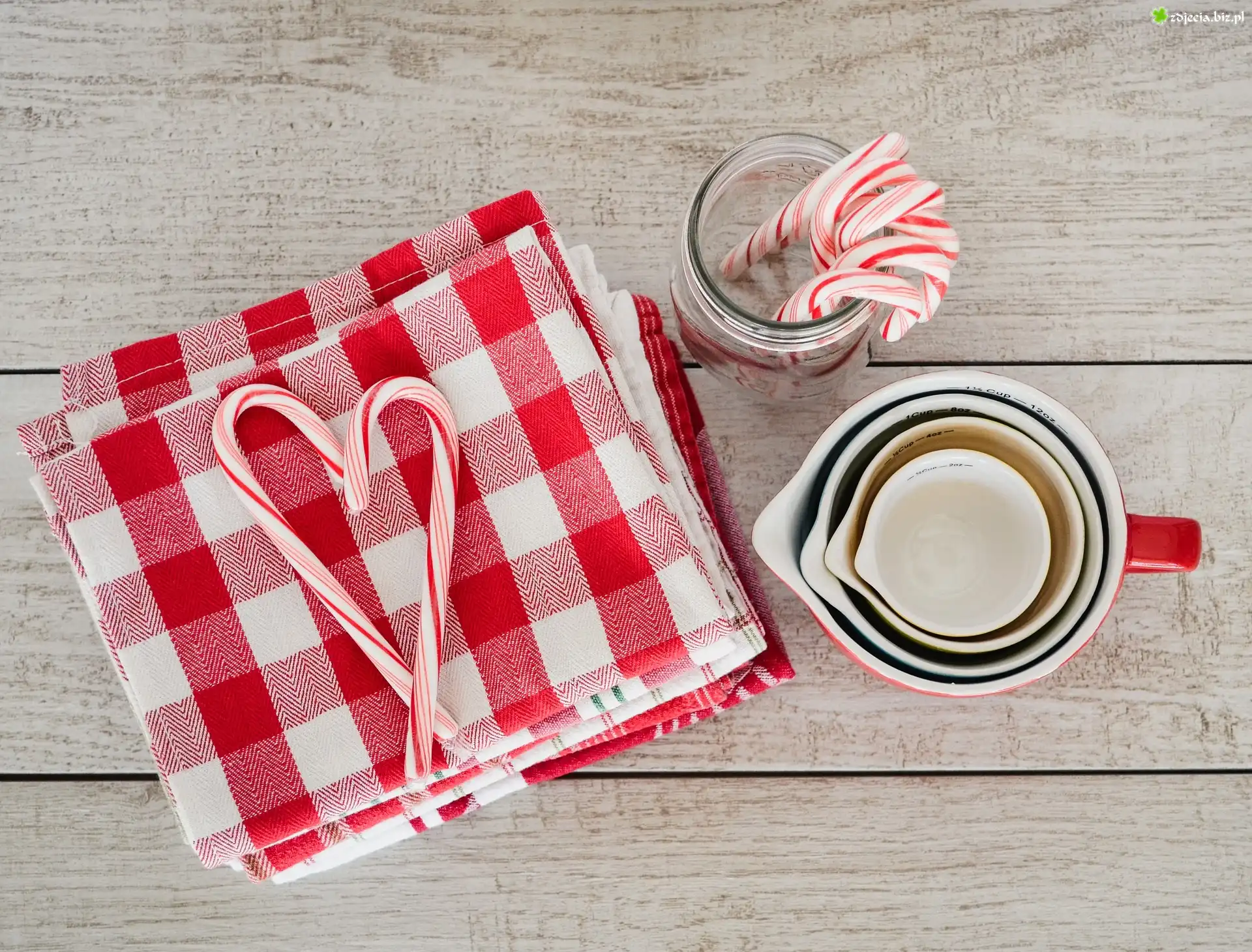 Zdjęcie, Kompozycja, Kubki, Słoik, Lizaki, Serduszko, Ściereczki