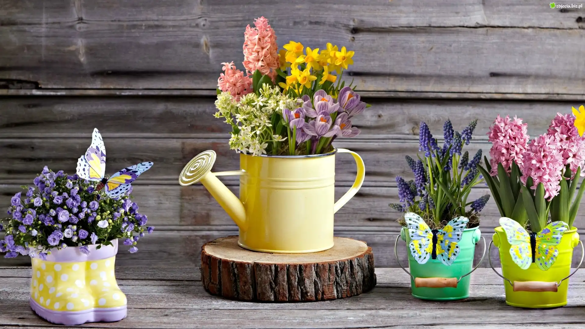 Zdjęcie Kompozycja, Wiosenne, Kwiaty, Hiacynty, Szafirki, Konewka