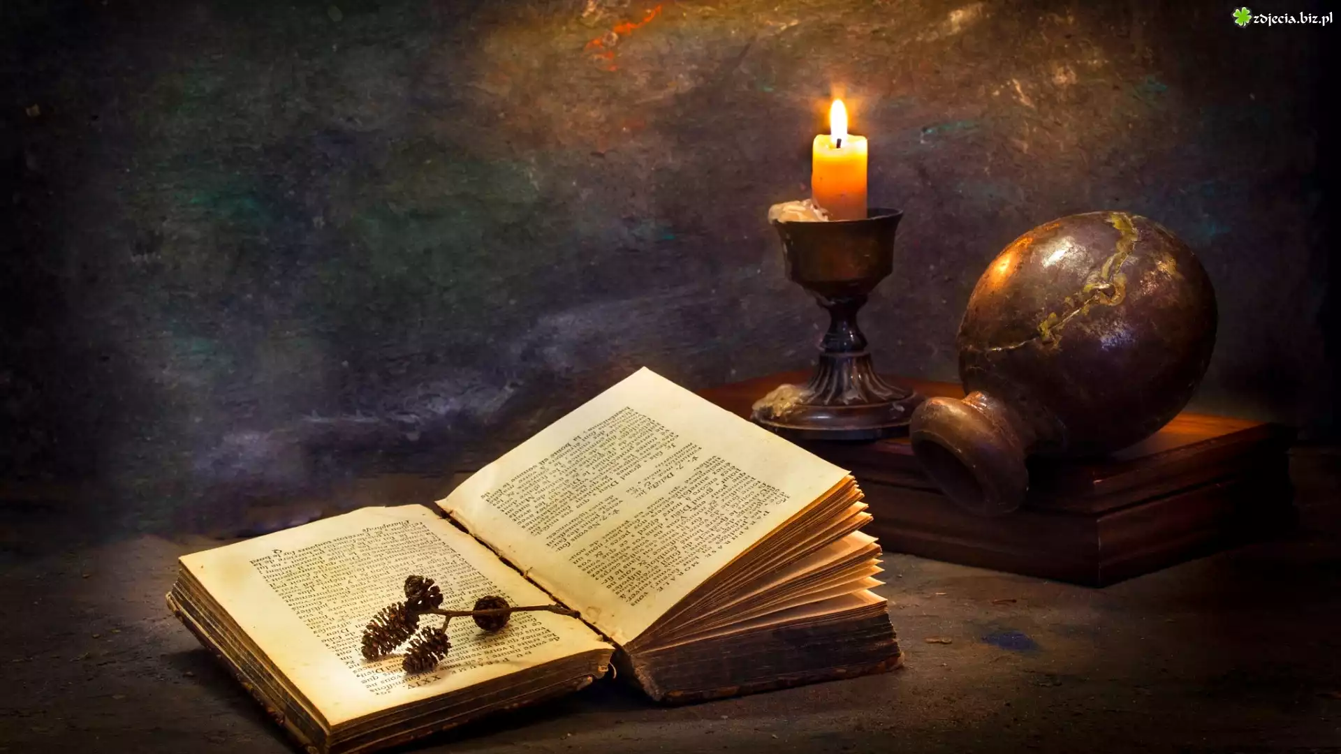 Zdjęcie Kompozycja, Książka, Świeca, Wazon