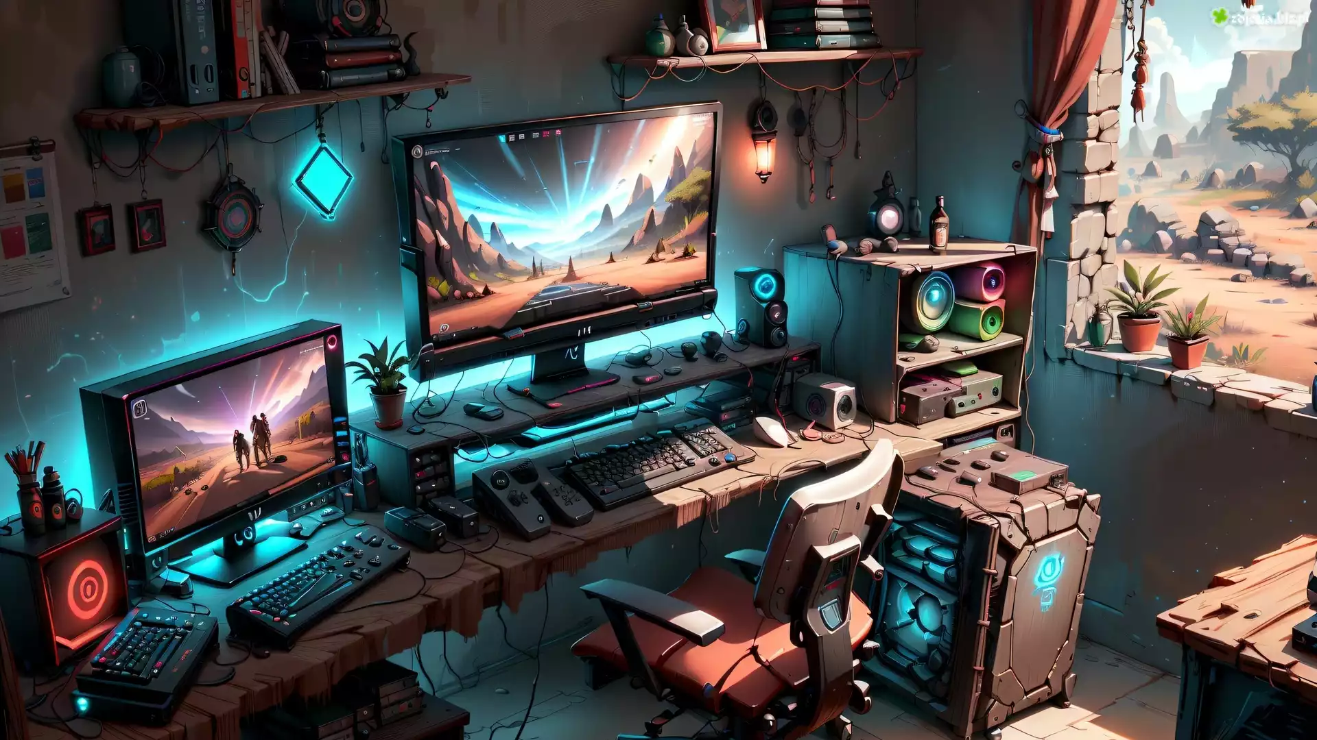 Zdjęcie, Wnętrze, Pokój, Monitory, Komputer, Okno, 2D