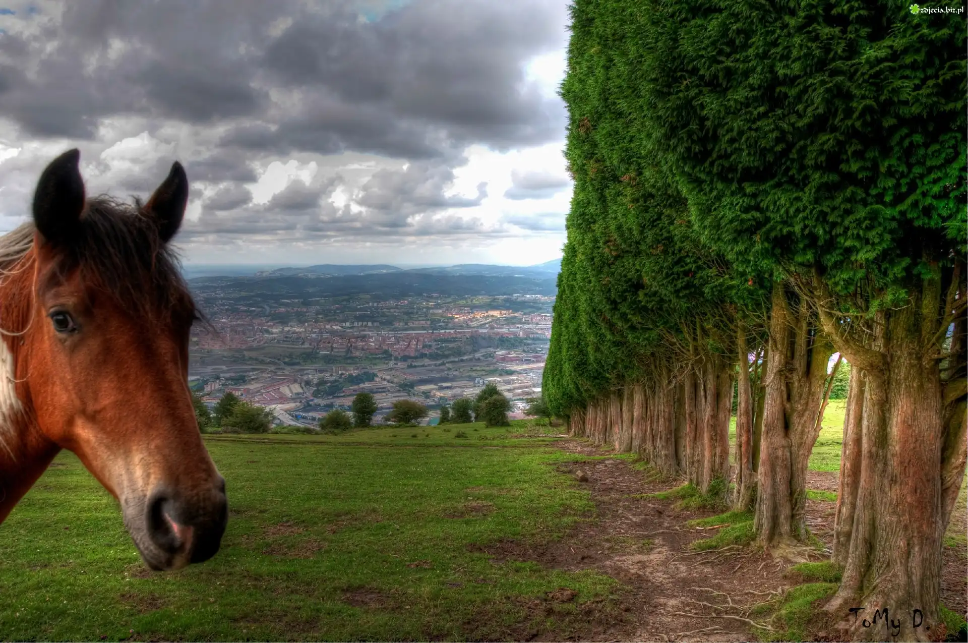 Zdjęcie Koń, Łeb, Łąka, Drzewa