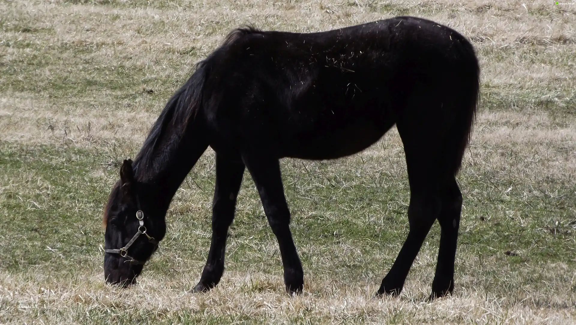 Zdjęcie, Koń, Maści, Czarnej, Pastwisko