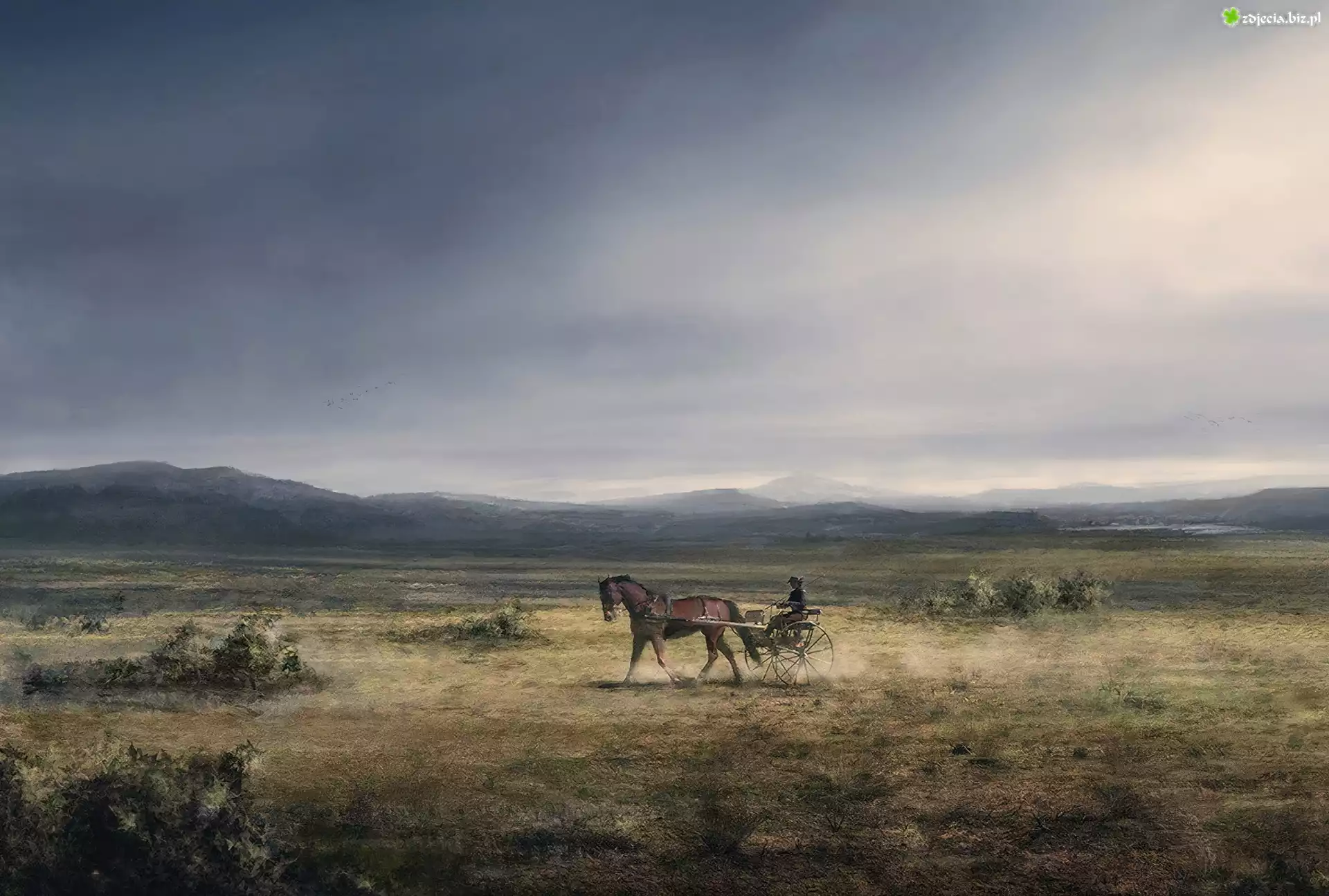 Zdjęcie Góry, Koń, Powóz