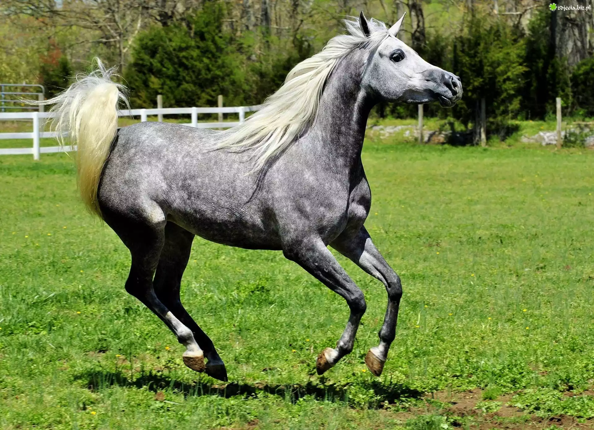 Zdjęcie Koń, Bieg, Biała, Grzywa, Ogon, Trawa