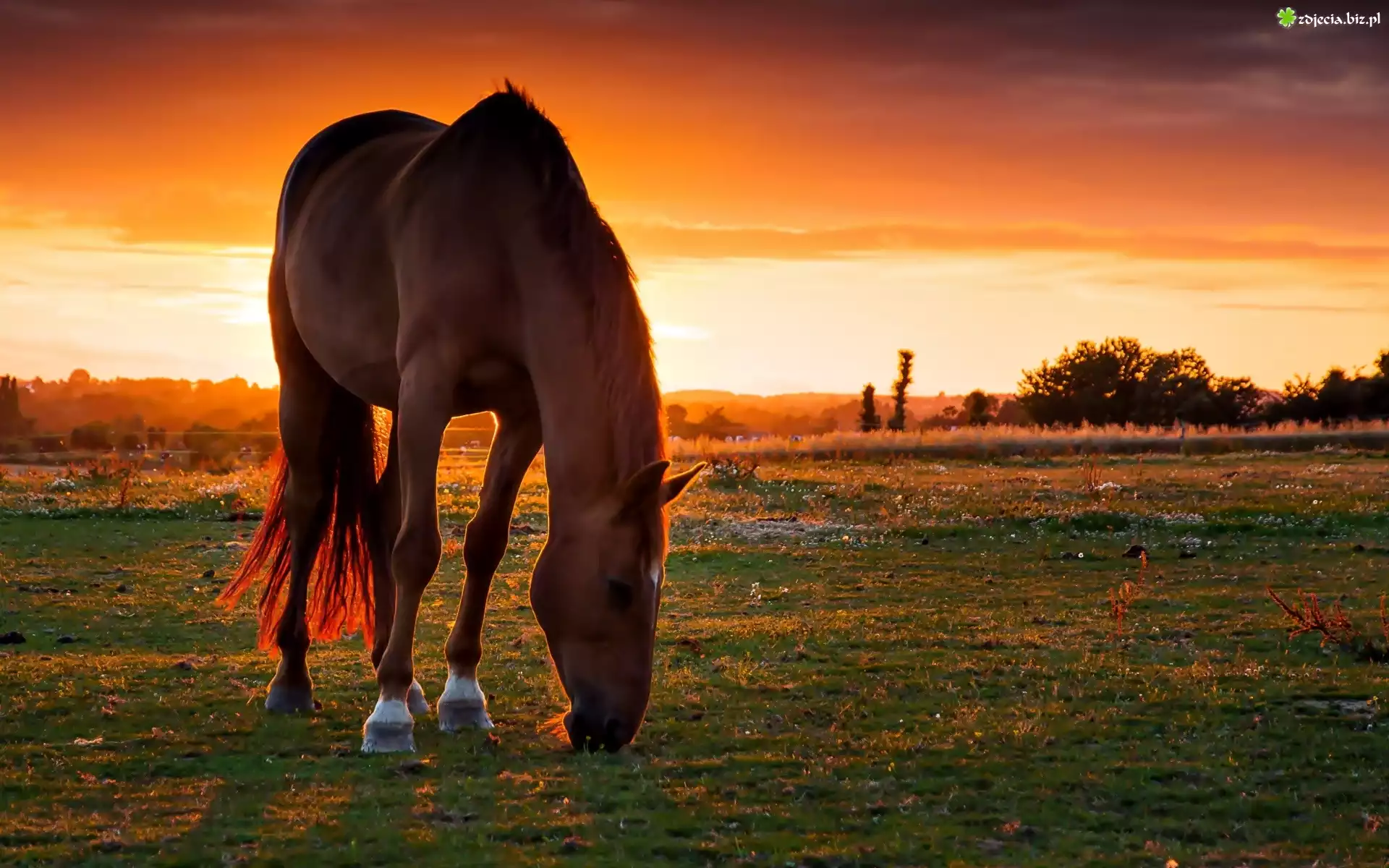 Zdjęcie Koń, Łąka, Zachód Słońca