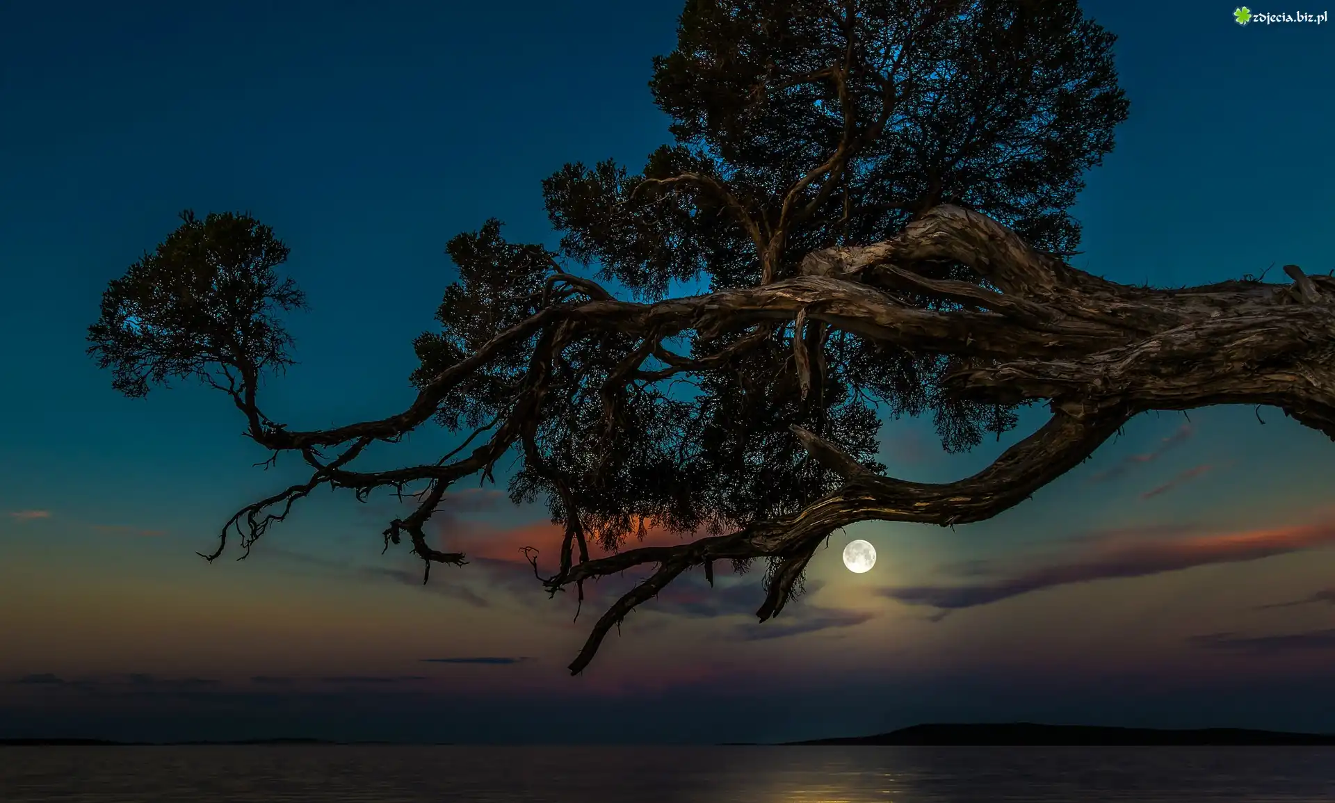 Zdjęcie Konar, Drzewa, Niebo, Księżyc