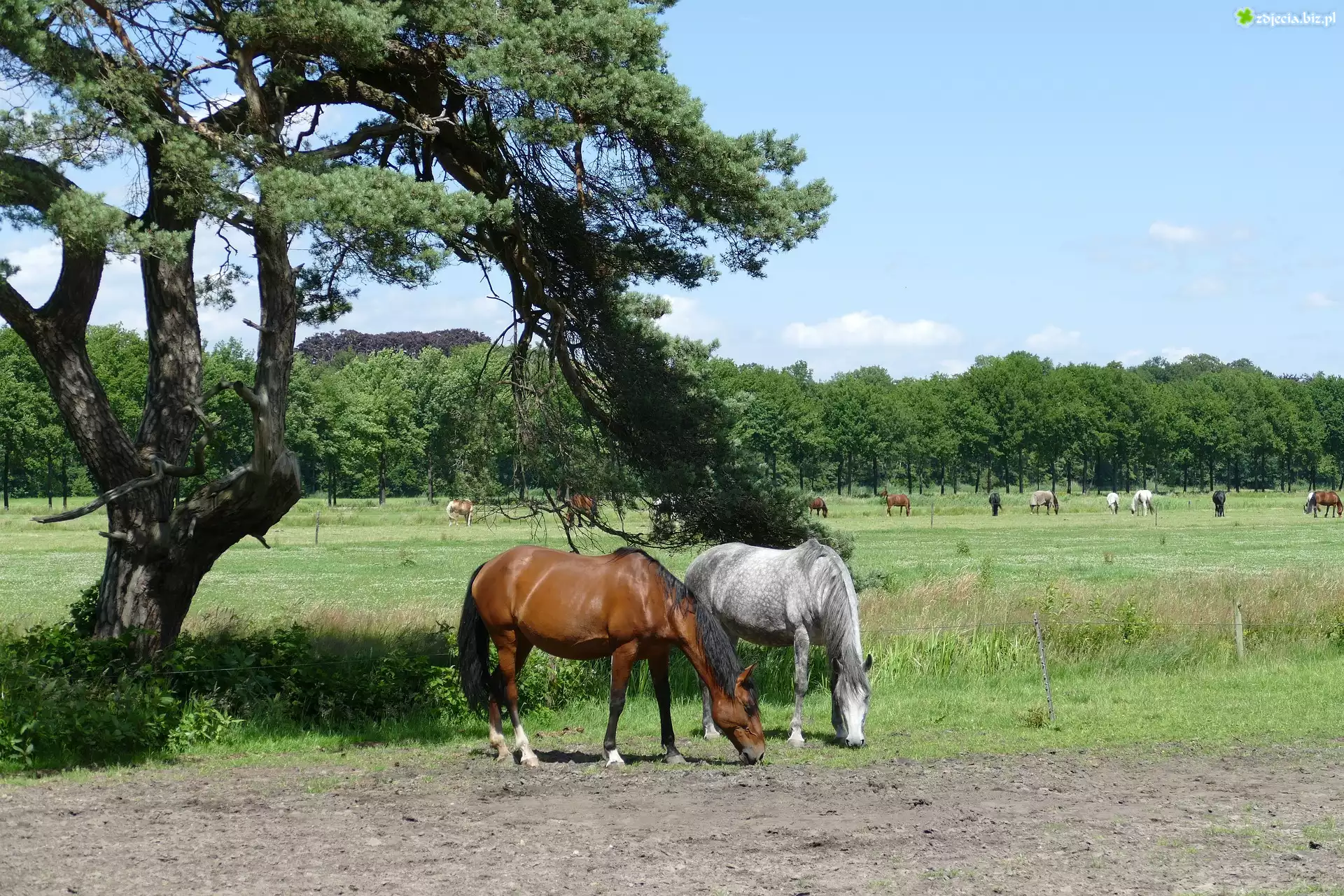 Zdjęcie Konie, Pastwisko, Drzewo