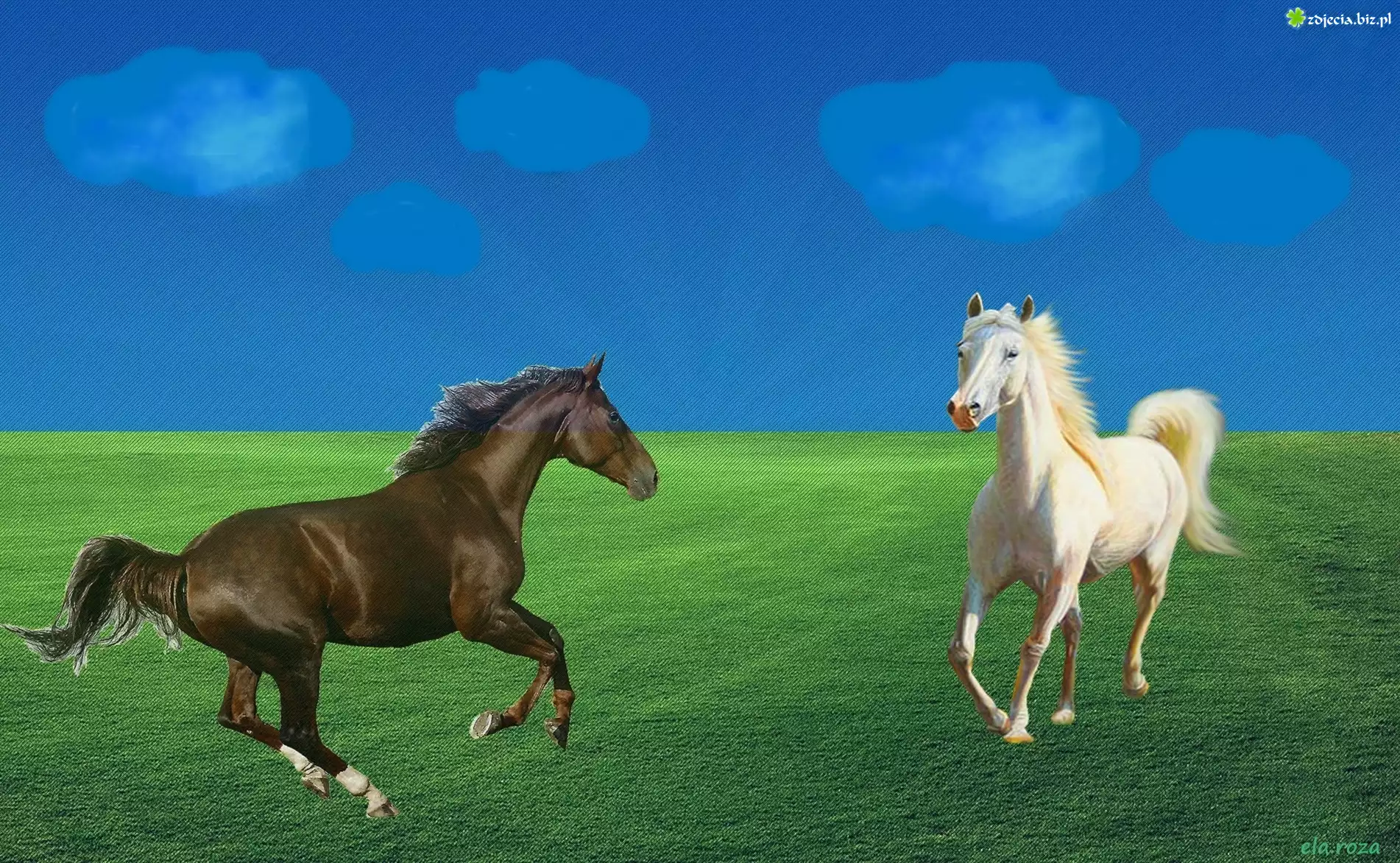 Zdjęcie Dwa, Konie, Łąka