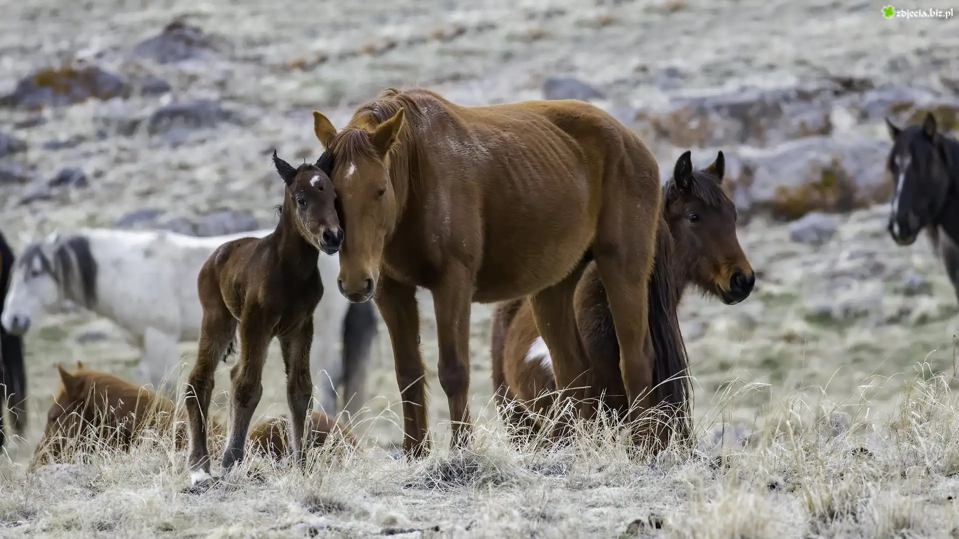 Zdjęcie Konie, Źrebak, Klacz, Trawa