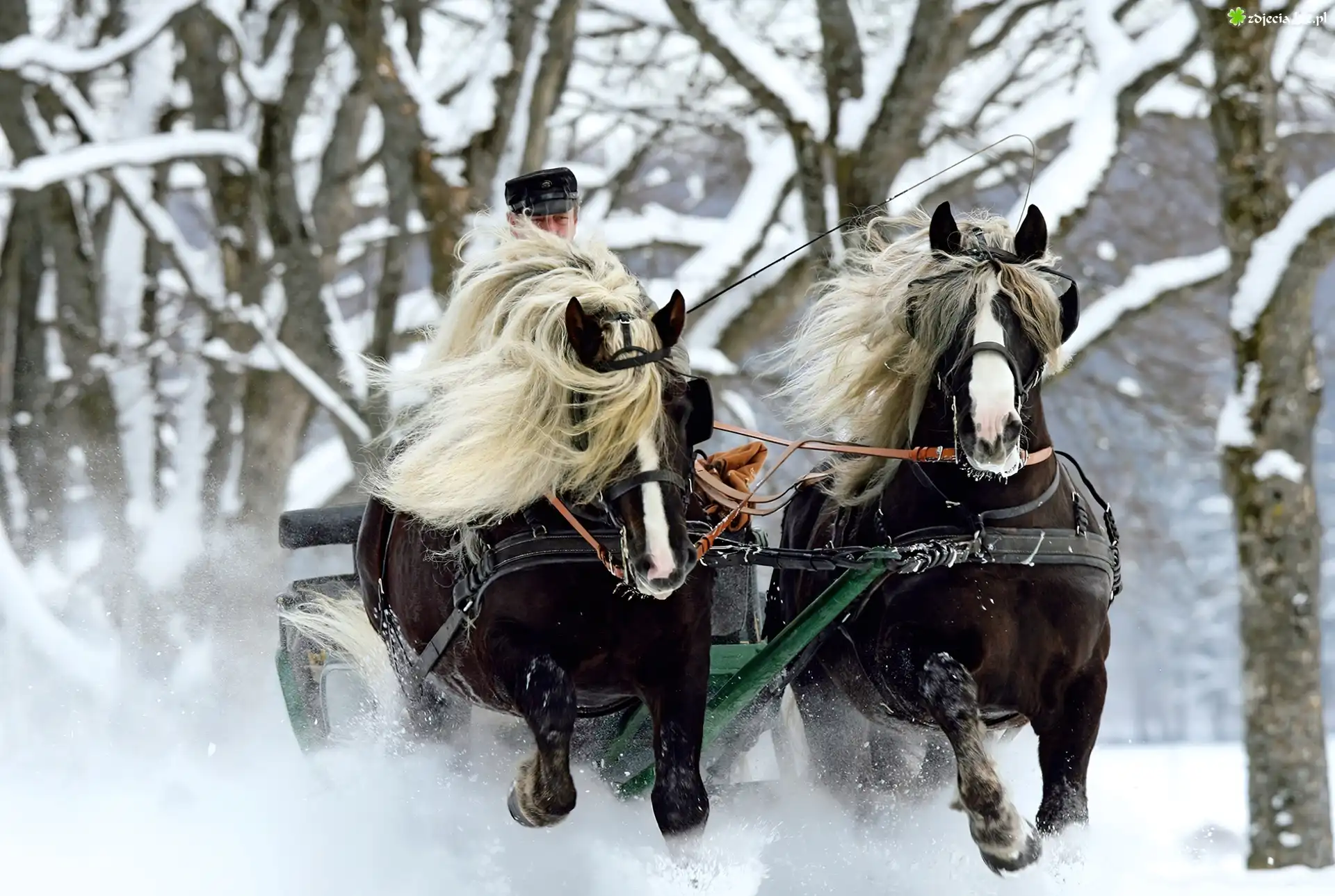 Zdjęcie Zima, Konie, Kulig