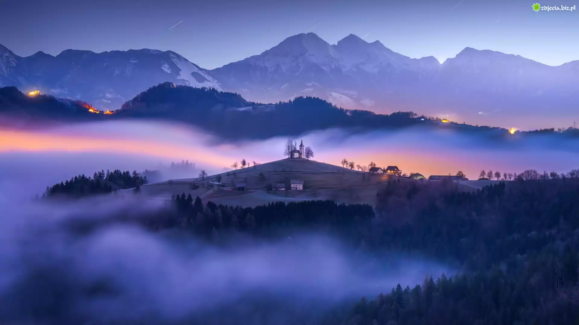 Zdjęcie Słowenia, Jamnik, Wzgórze, Kościół, Góry, Mgła
