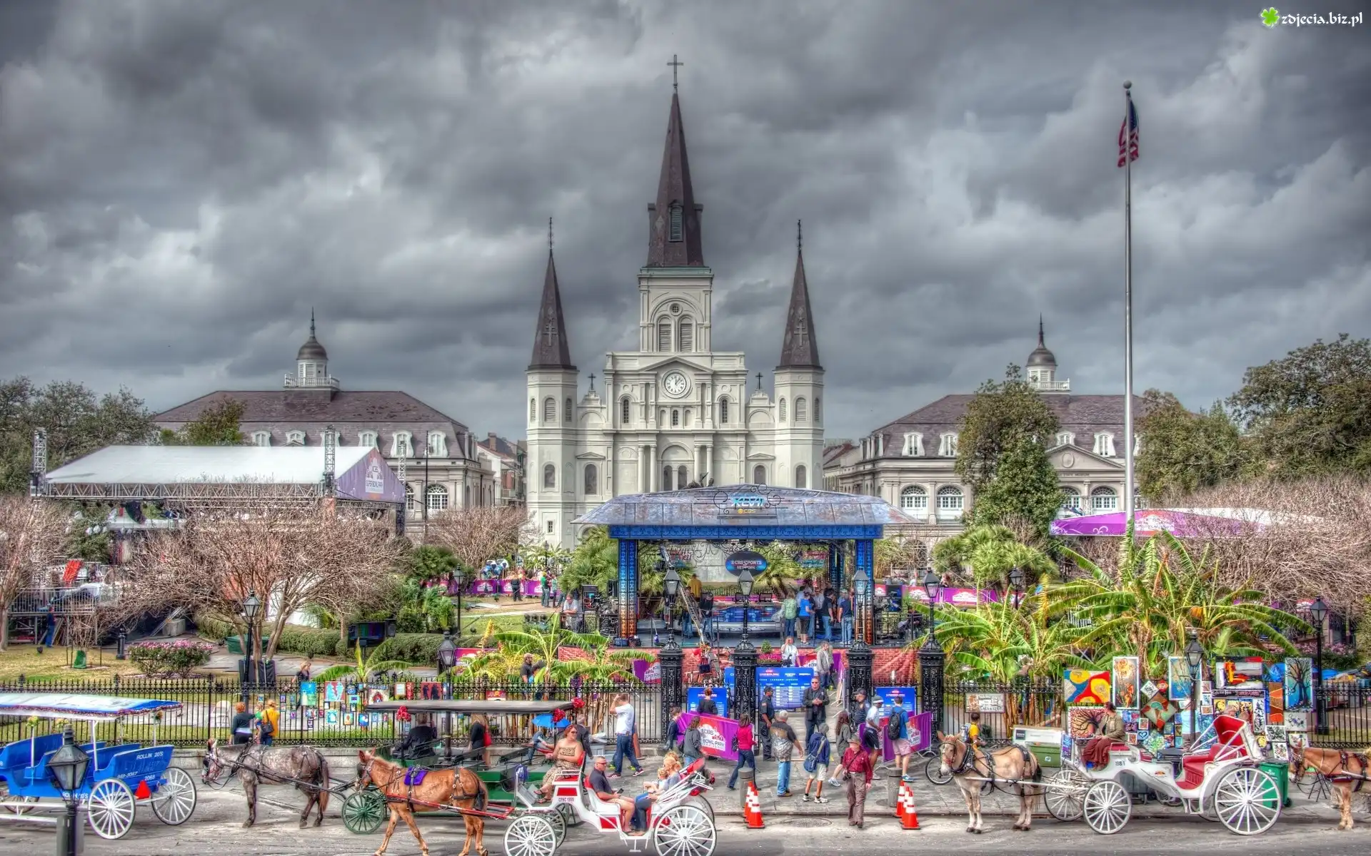 Zdjęcie Kościół, Powozy, Scena, Nowy Orlean