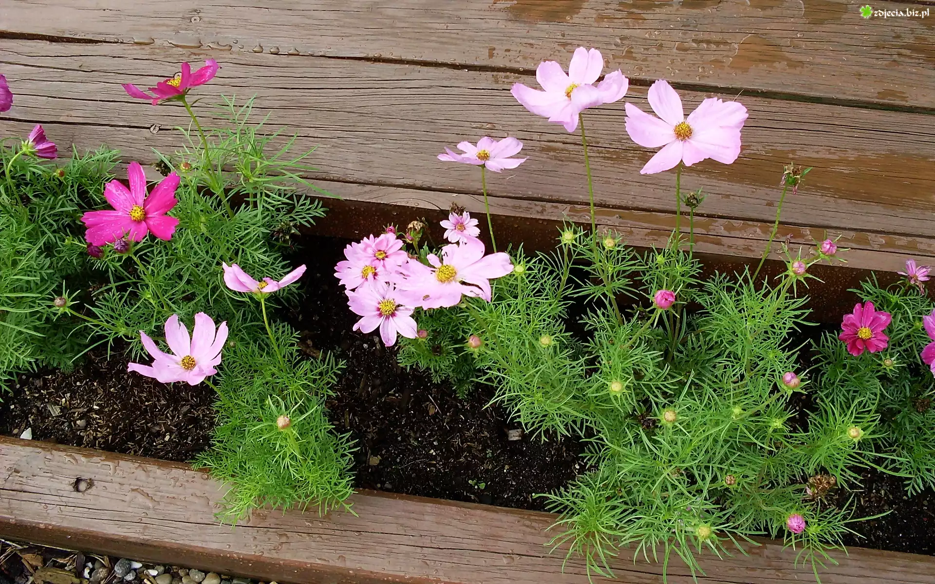 Zdjęcie Kwiaty, Kosmea, Deski