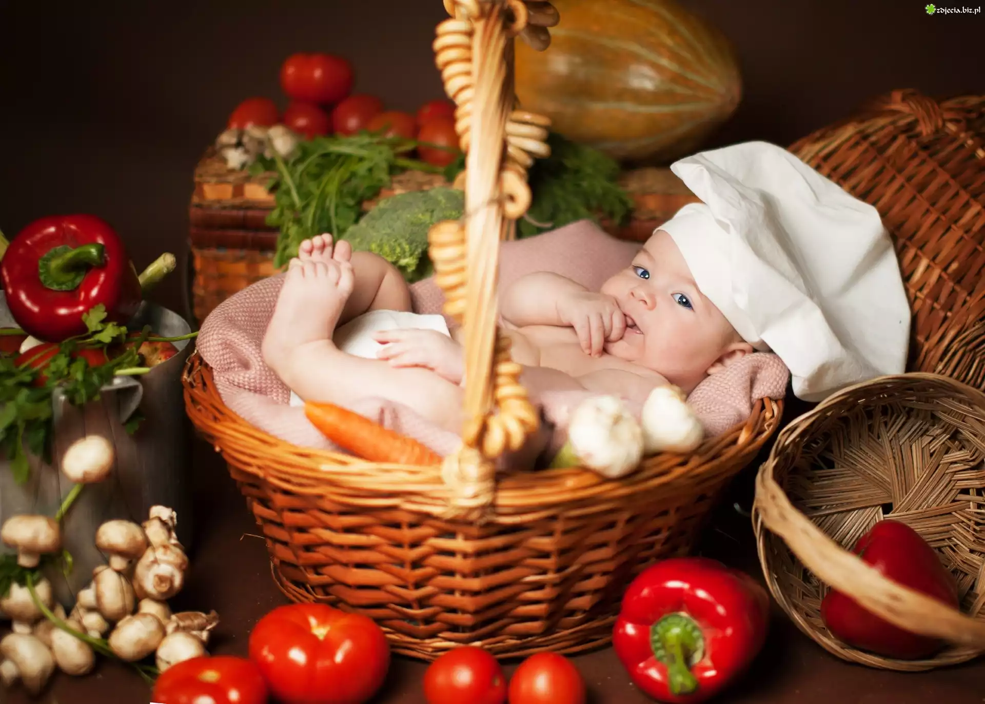 Zdjęcie, Dziecko, Kosz, Warzywa
