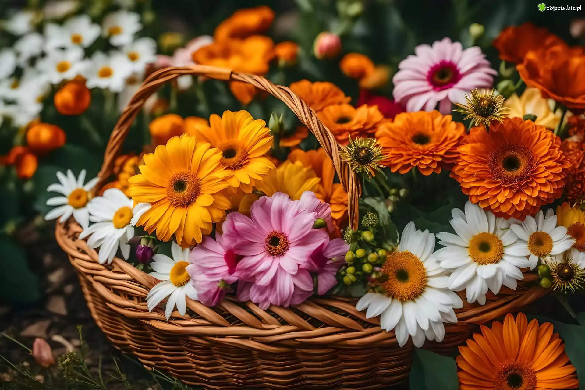 Zdjęcie Kolorowe, Kwiaty, Gerbery, Kosz