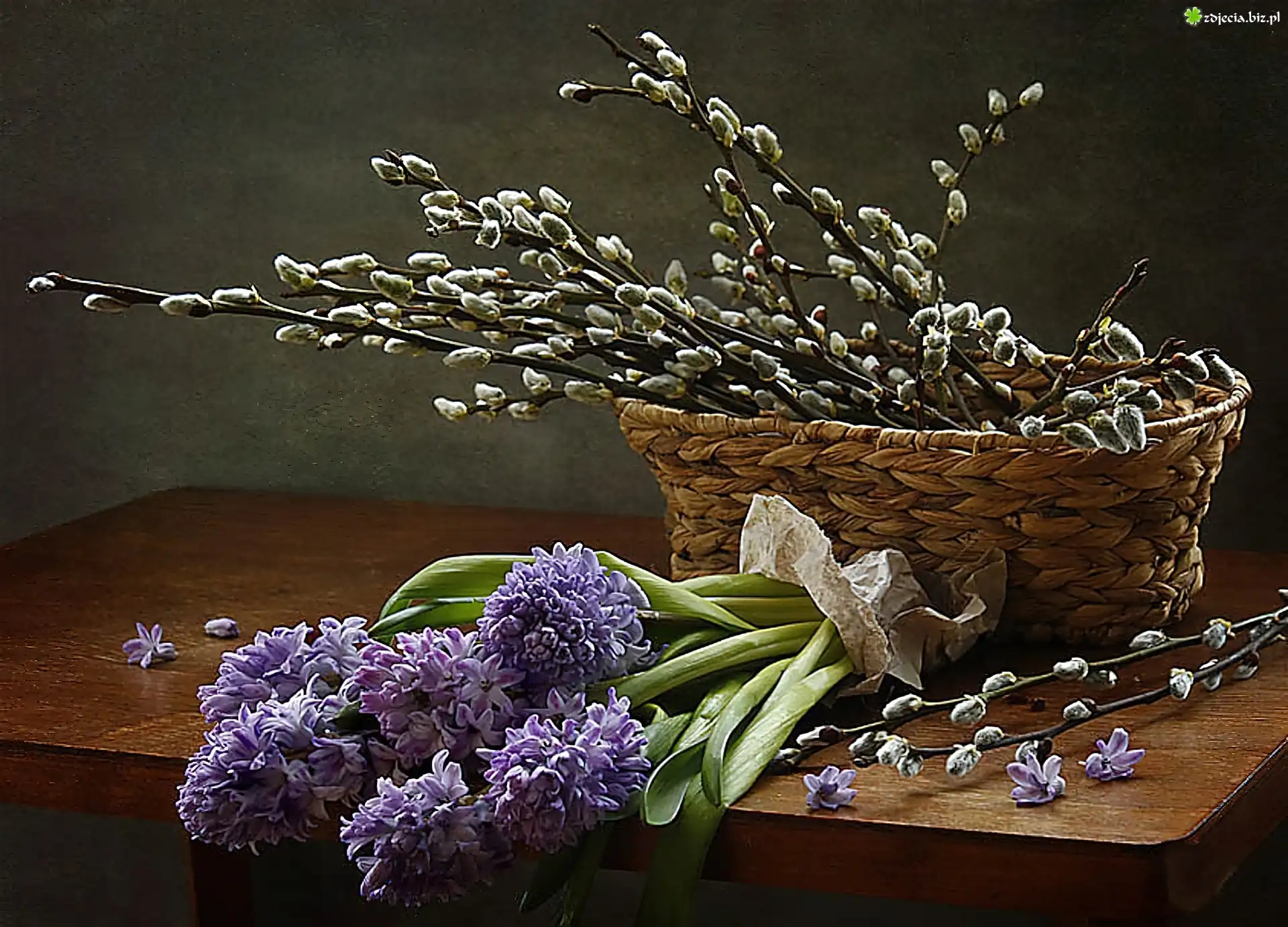 Zdjęcie Kosz, Bazie, Stół, Kwiaty