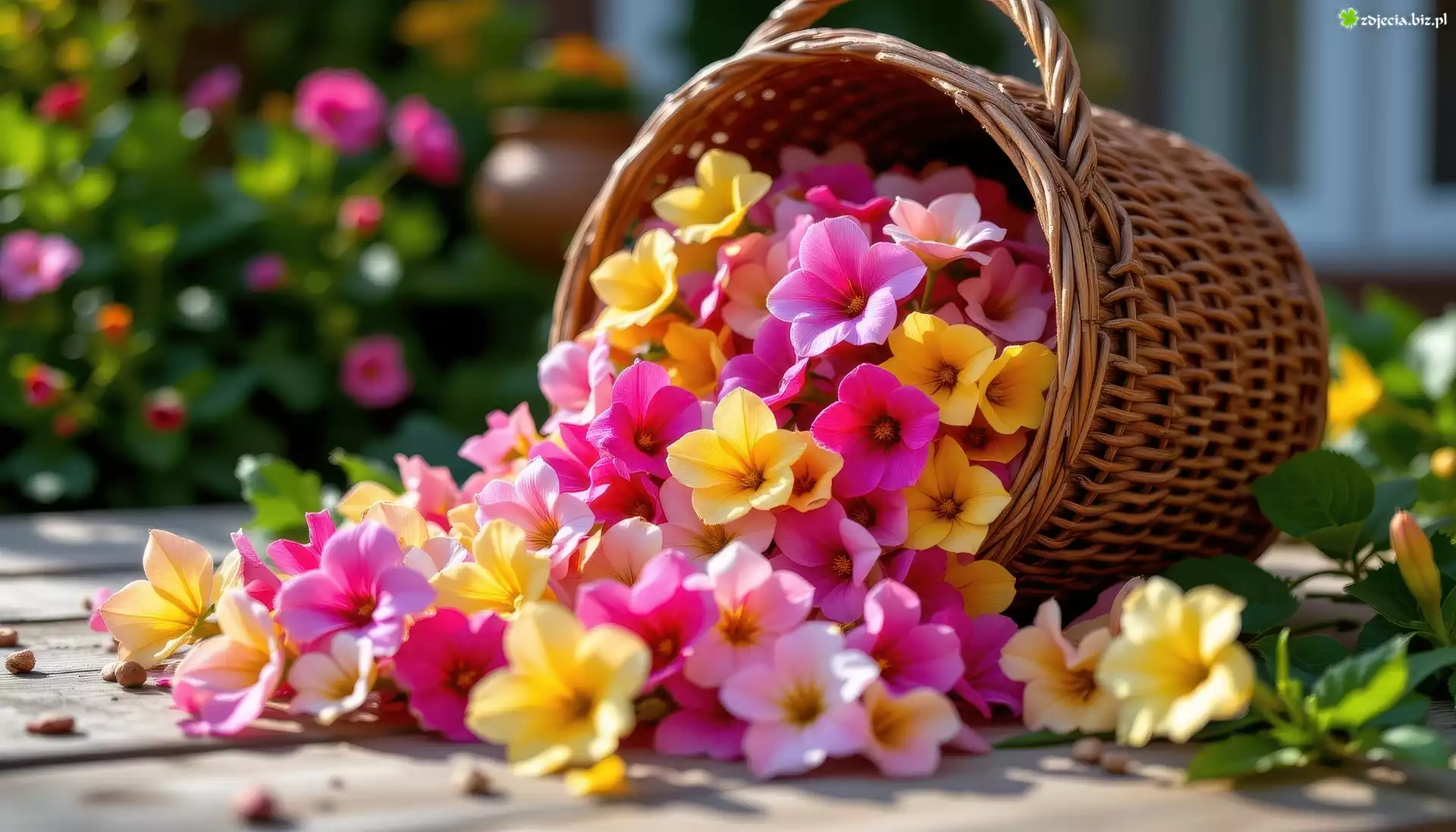 Zdjęcie Żółte, Różowe, Kwiaty, Kosz