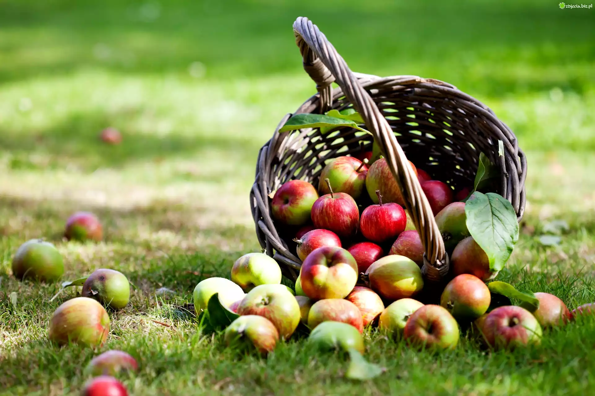 Zdjęcie Koszyk, Rozsypane, Jabłka, Trawa