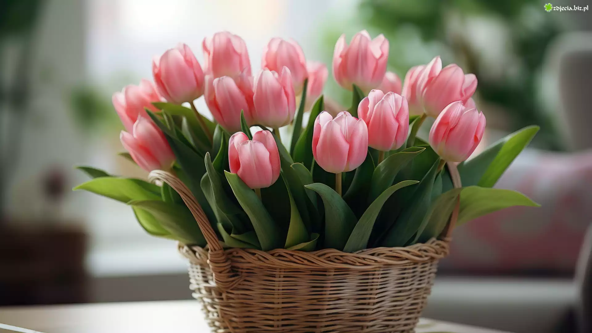 Zdjęcie Kwiaty, Różowe, Tulipany, Koszyk