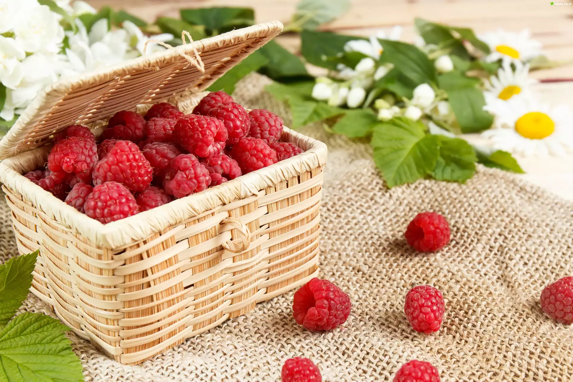Zdjęcie, Maliny, Koszyk, Kwiaty