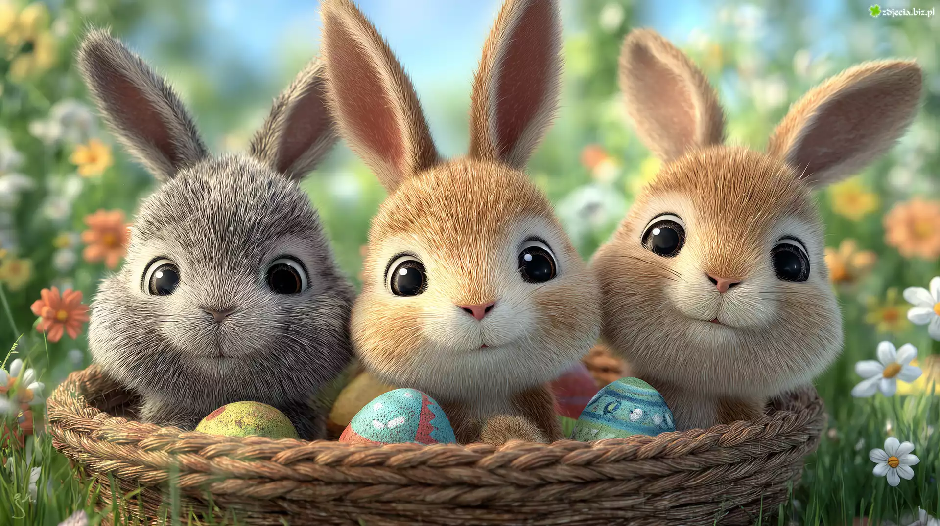 Zdjęcie Zajączki, Koszyk, Pisanki, Grafika AI