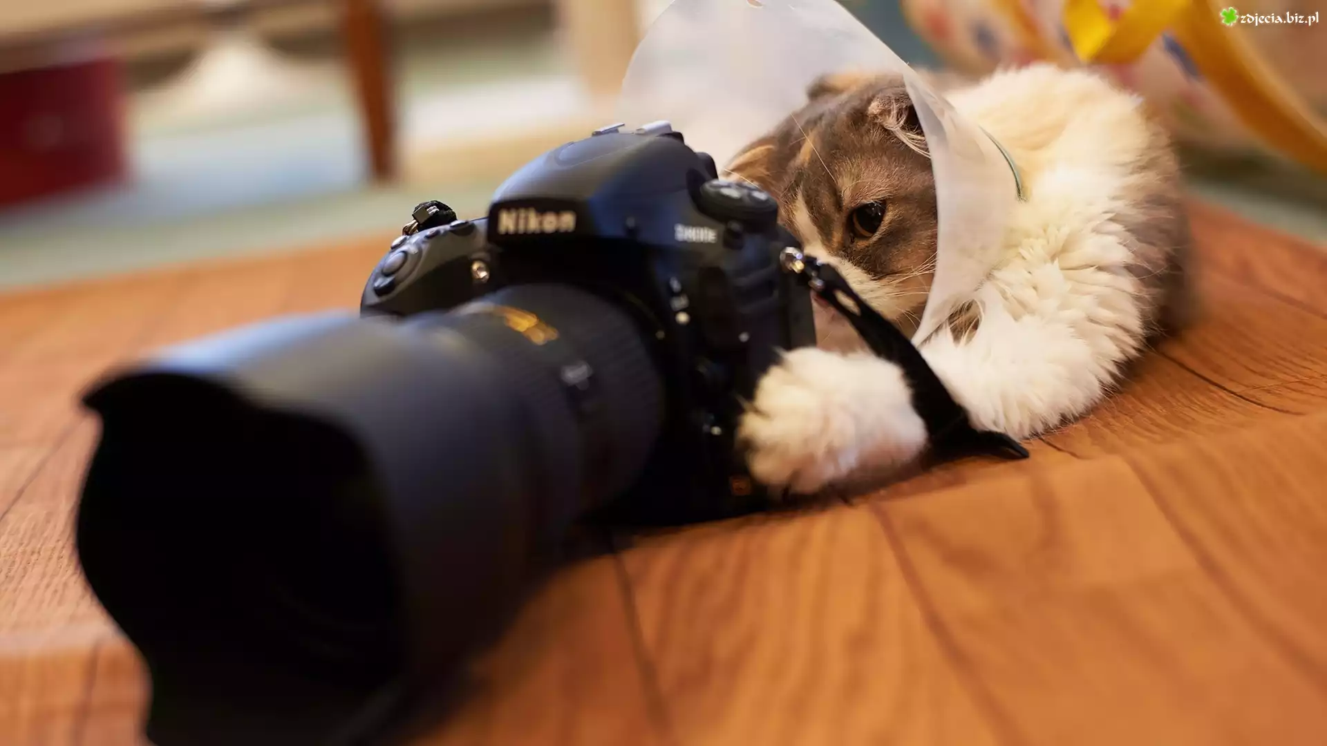 Zdjęcie Kot, Aparat, Fotograficzny, Nikon