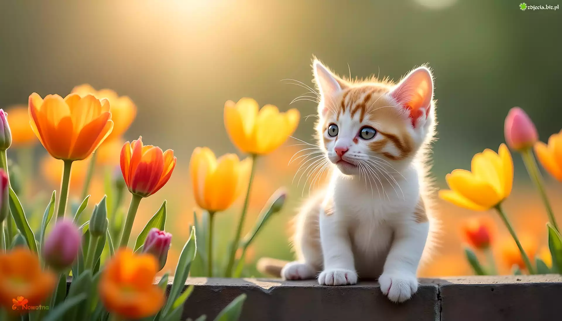 Zdjęcie Mały, Kot, Kwiaty, Grafika AI