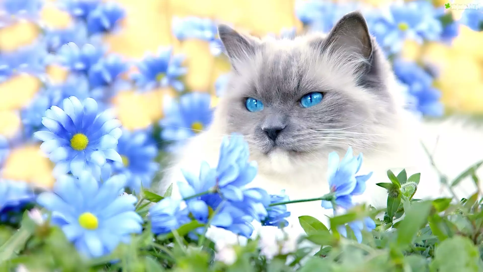 Zdjęcie, Kot, Niebieskie, Oczy, Margerytki