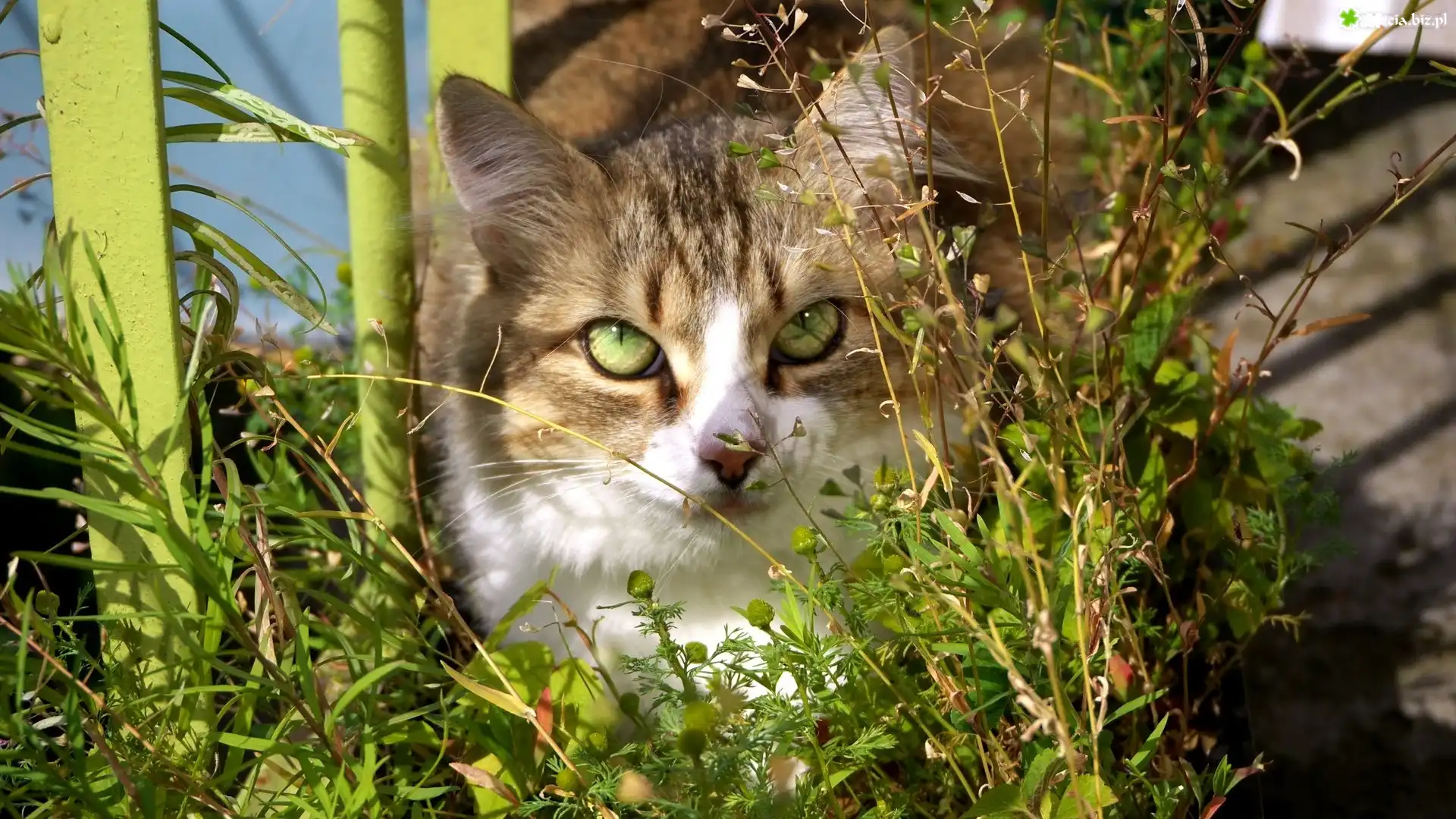 Zdjęcie Kot, Zielone, Oczy, Rośliny