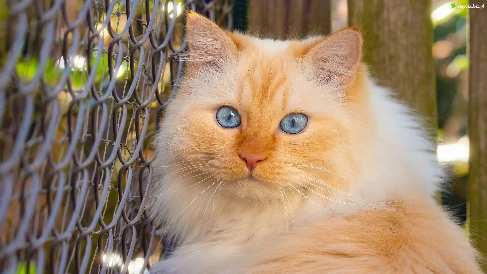 Zdjęcie Kot, Niebieskie, Oczy, Ogrodzenie, Siatka